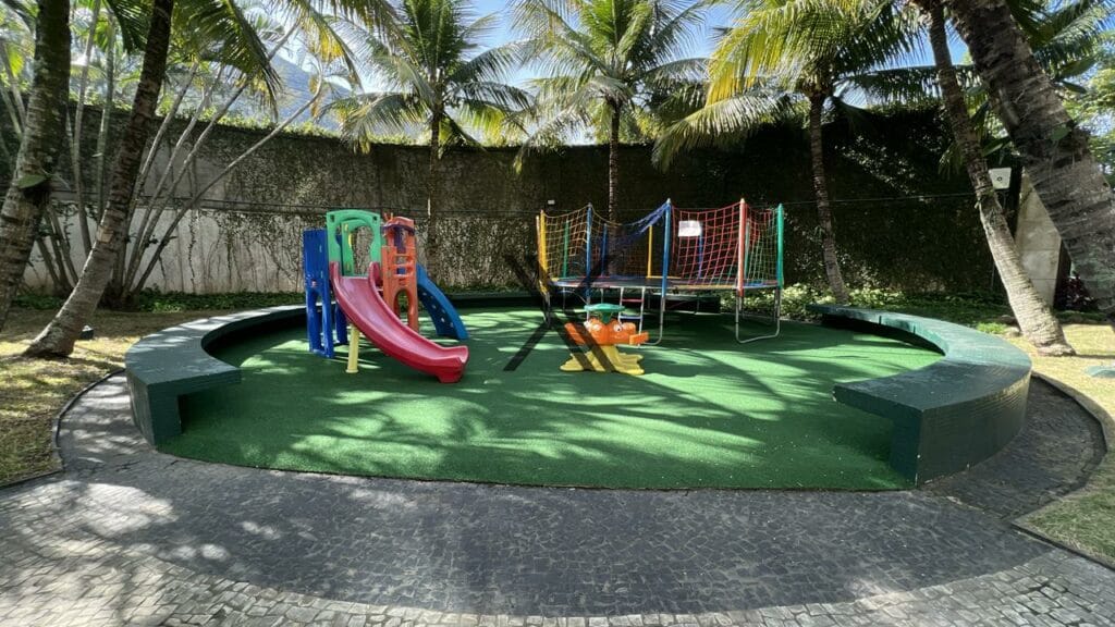 O condomínio garante portaria 24 horas, controle total por câmeras, vigias noturnos armados, gerador de energia, academia, piscina adulto e infantil, salão de festas, quadra poliesportiva, brinquedoteca externa e sauna.