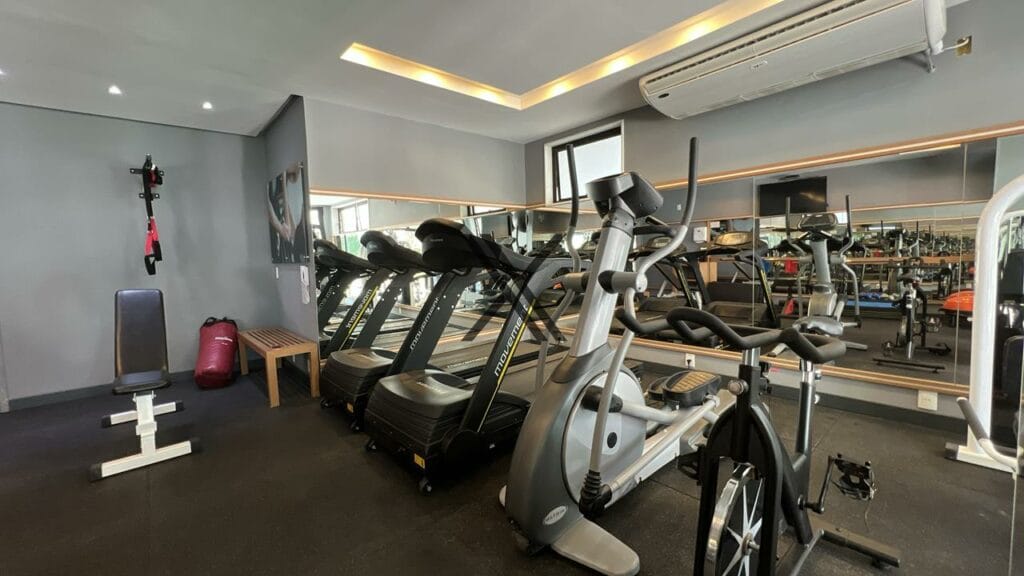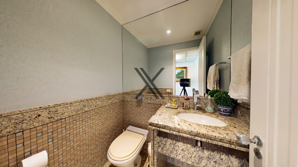 Todos os ambientes contam com aparelhos de ar-condicionado, em um projeto que visa o conforto térmico em todo o imóvel. O apartamento possui piso em granito na sala e nas varandas e na parte interna com carpete.