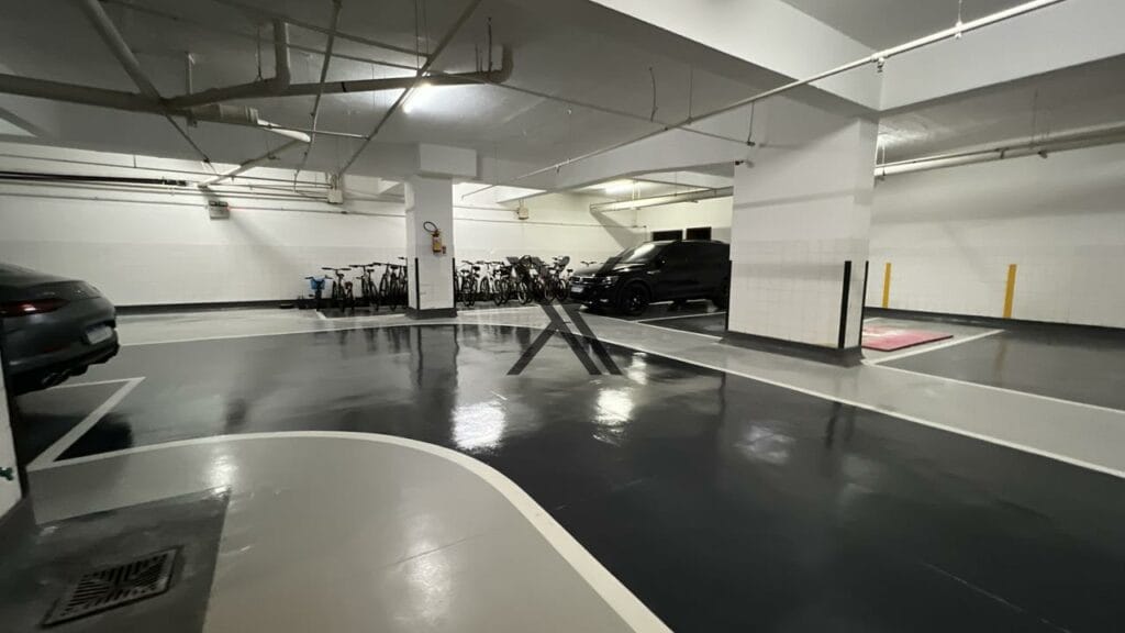 Imóvel com 2 vagas de garagem e box para armazenagem de itens no subsolo.