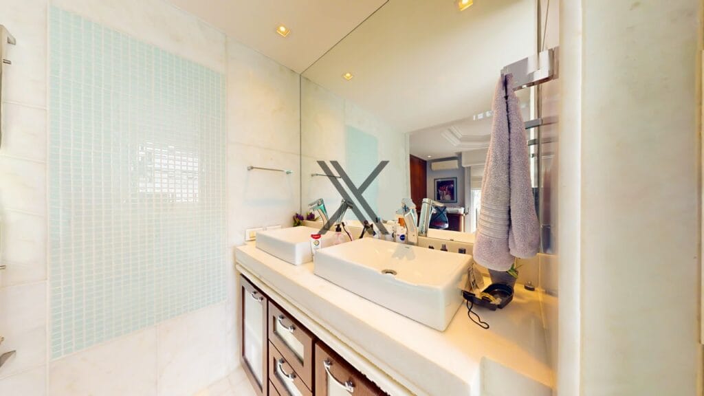 No acesso à parte privativa, o corredor e as portas, com ferragens de primeira linha, fazem a separação de ambientes, trazendo versatilidade e privacidade ao dia a dia dos moradores. O apartamento é composto por 3 suítes, todas bem amplas, com varanda e vista-mar.