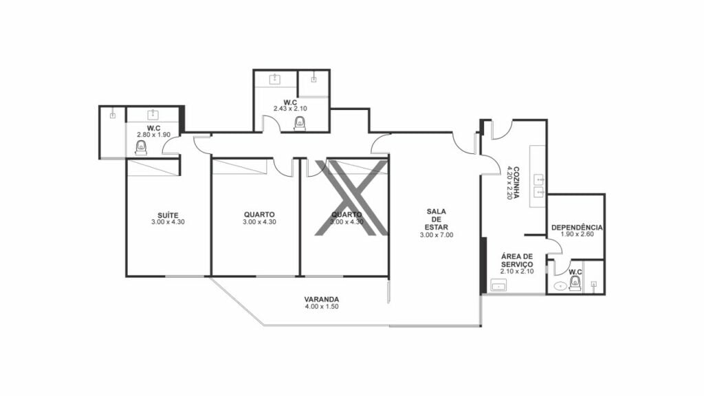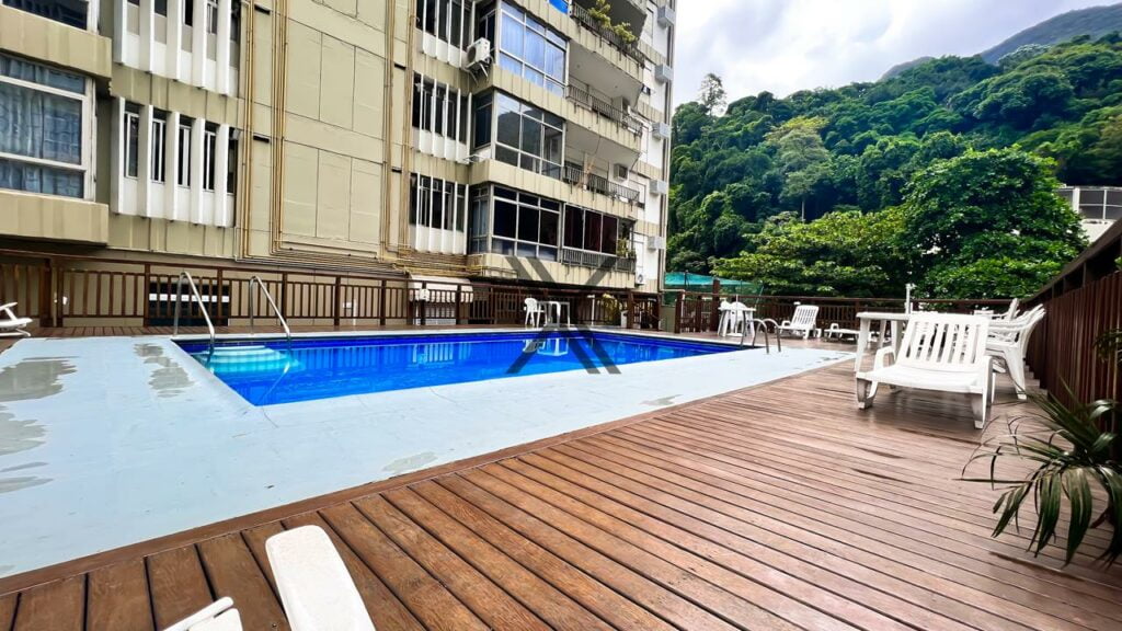 A parte social do apartamento é composta por uma sala em 2 ambientes com acesso à varanda, que conta com vista para a Pedra da Gávea e para áreas verdes. Além disso, a cozinha é ampla e muito arejada, dispondo também de uma dependência completa.