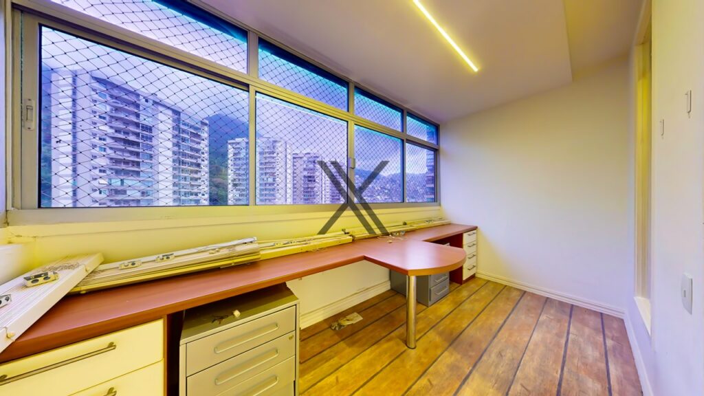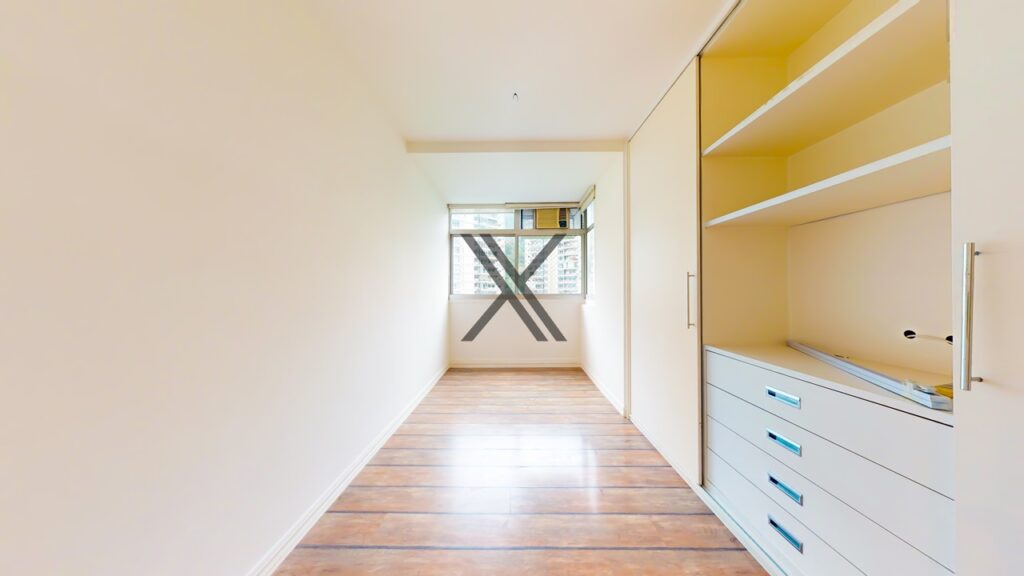 Na área privativa, o imóvel possui 3 quartos, sendo 2 suítes (1 suíte com closet e espaço destinado a um escritório). Todos os quartos têm boas metragens e armários planejados em ótimo estado, além de contarem com amplas janelas.