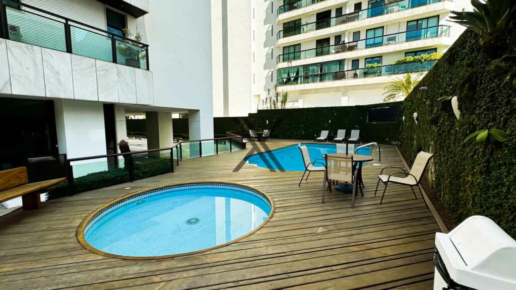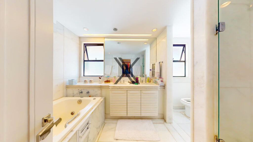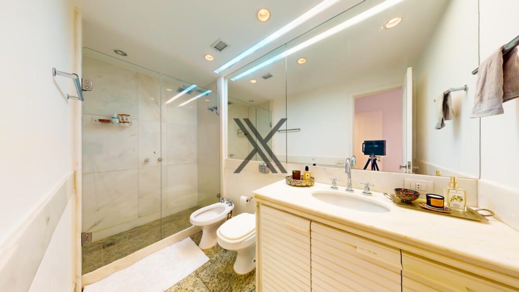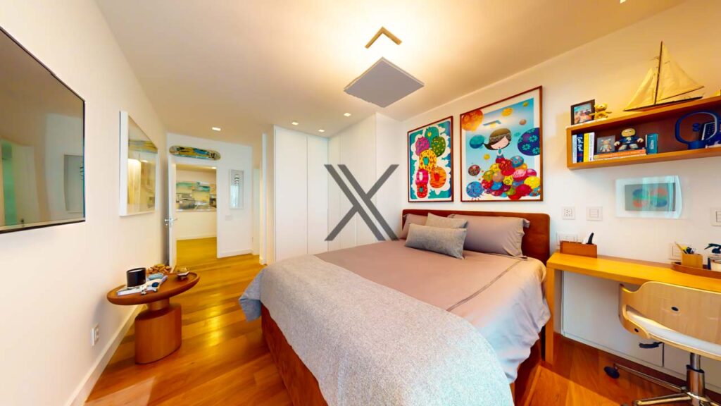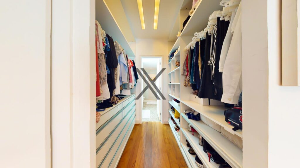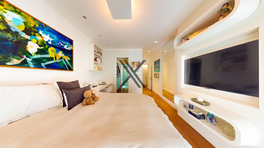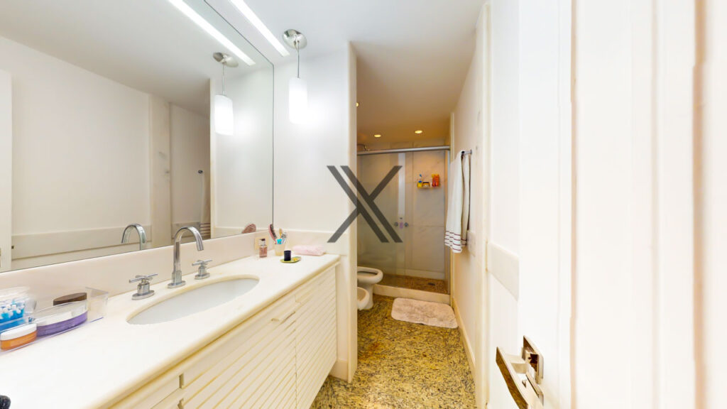 Na parte privativa, o imóvel dispõe de 3 suítes, todas com vista para o mar e armários planejados. Originalmente o imóvel possui 4 quartos, porém a suíte master foi ampliada, oferecendo assim um espaçoso walk-in closet e dois banheiros.