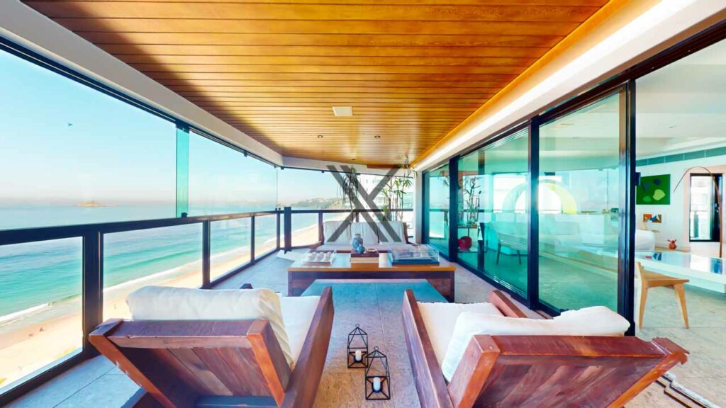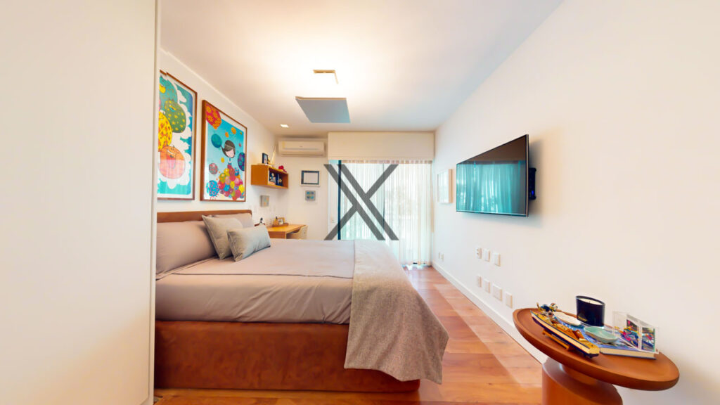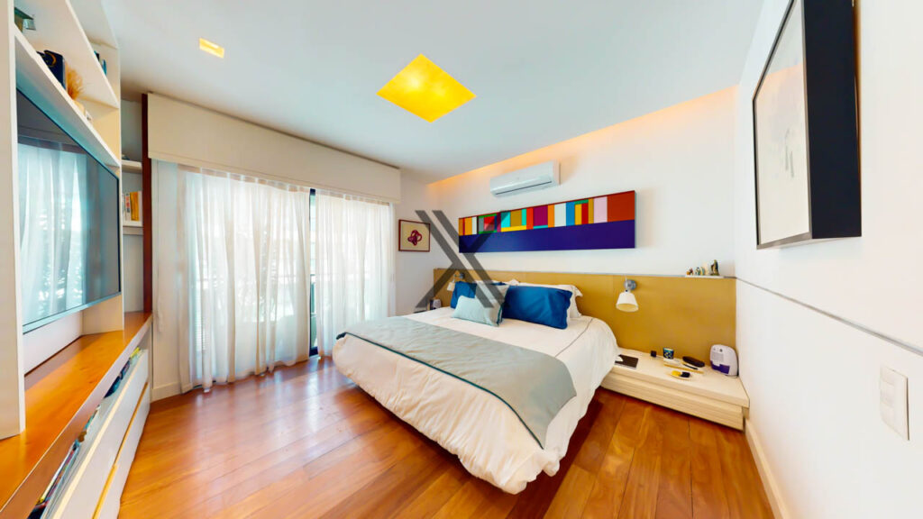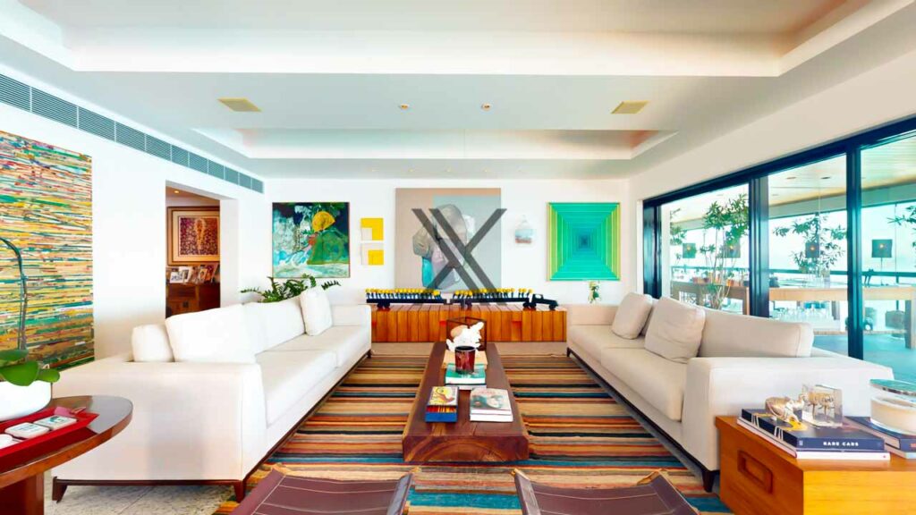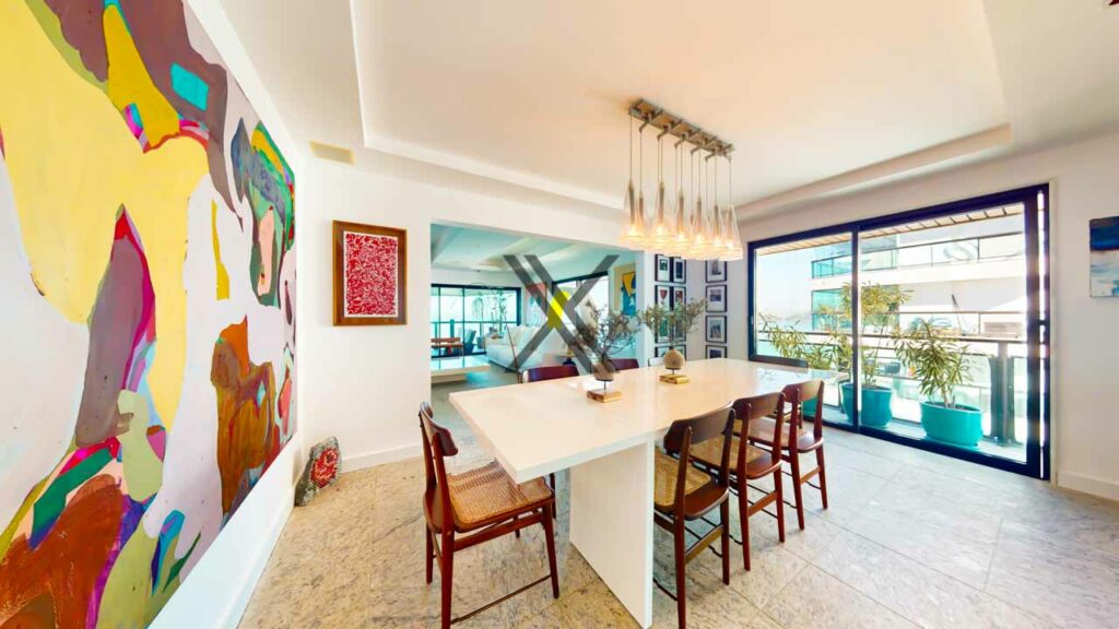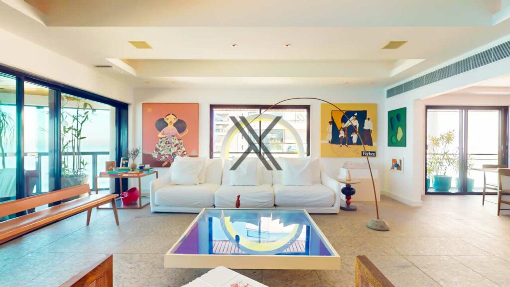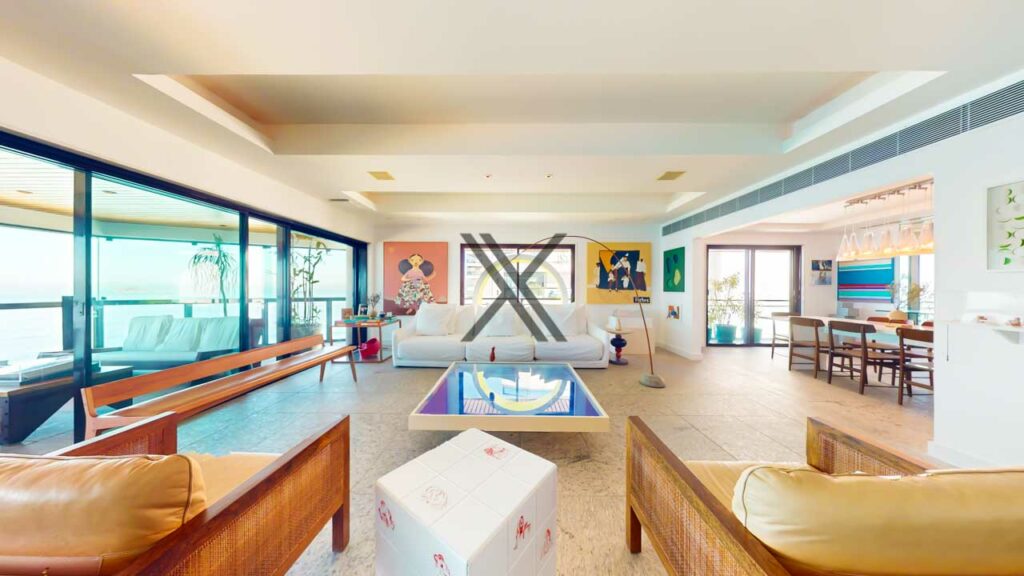 Apartamento de 389 m², reformado, em andar alto e com vista para o mar e campo de golfe. Situado em uma localização privilegiada, em frente a Praia de São Conrado, ele fica a menos de 5 minutos do metrô e do Shopping Fashion Mall.