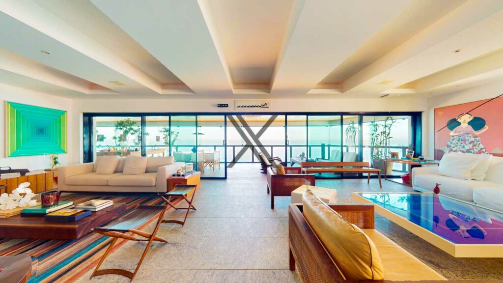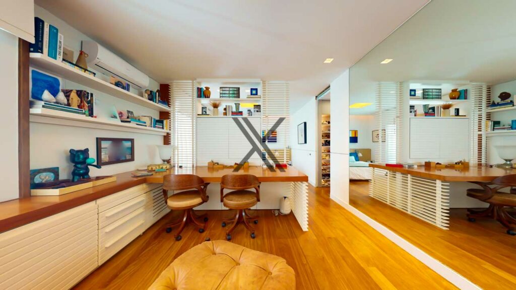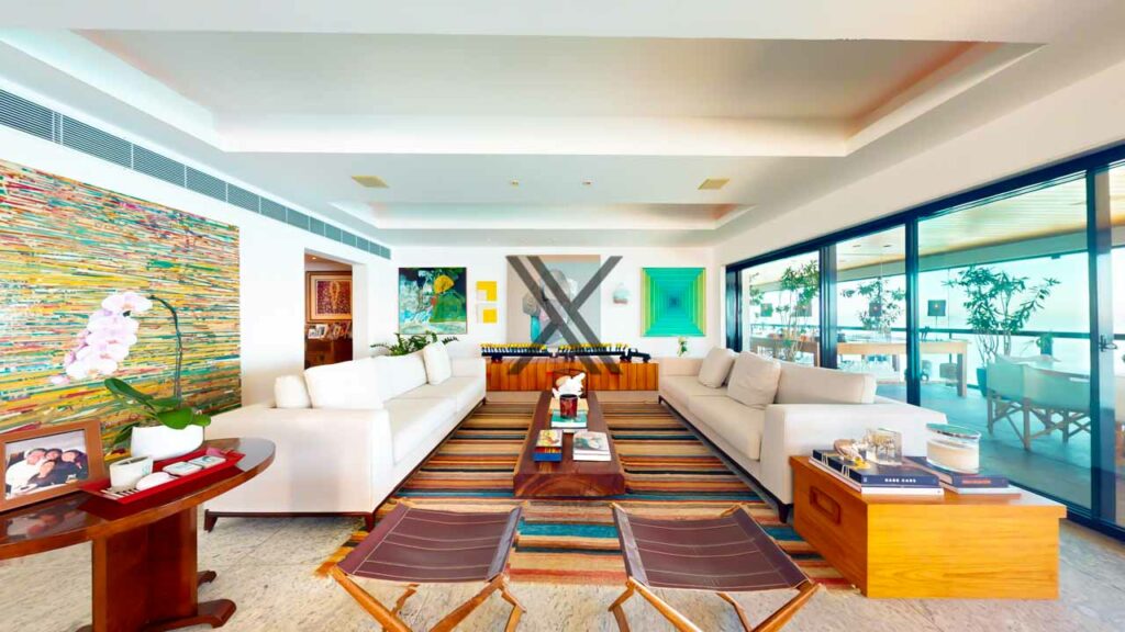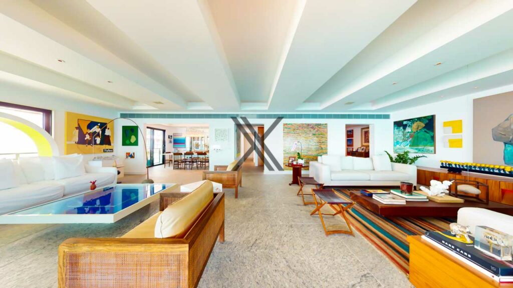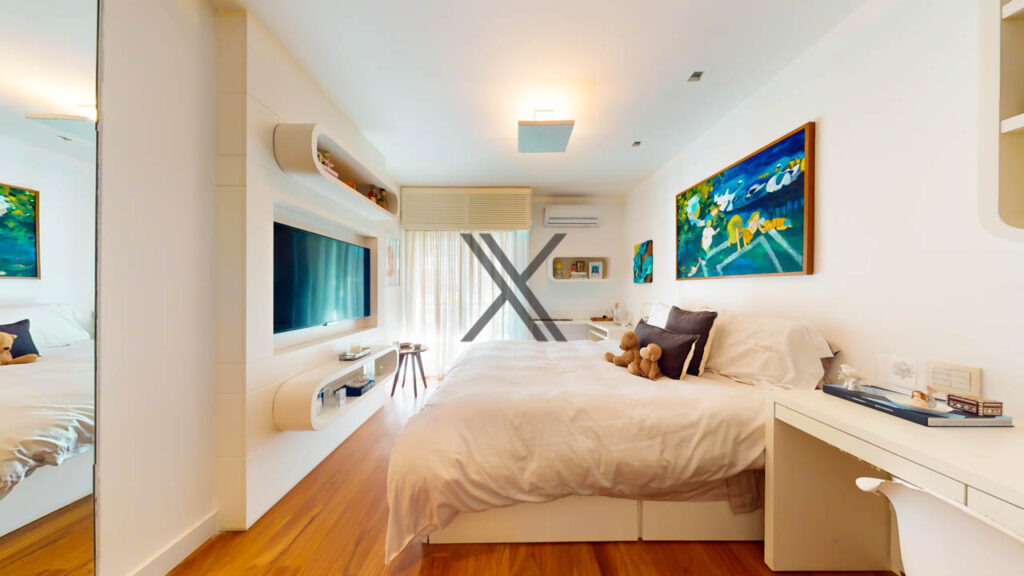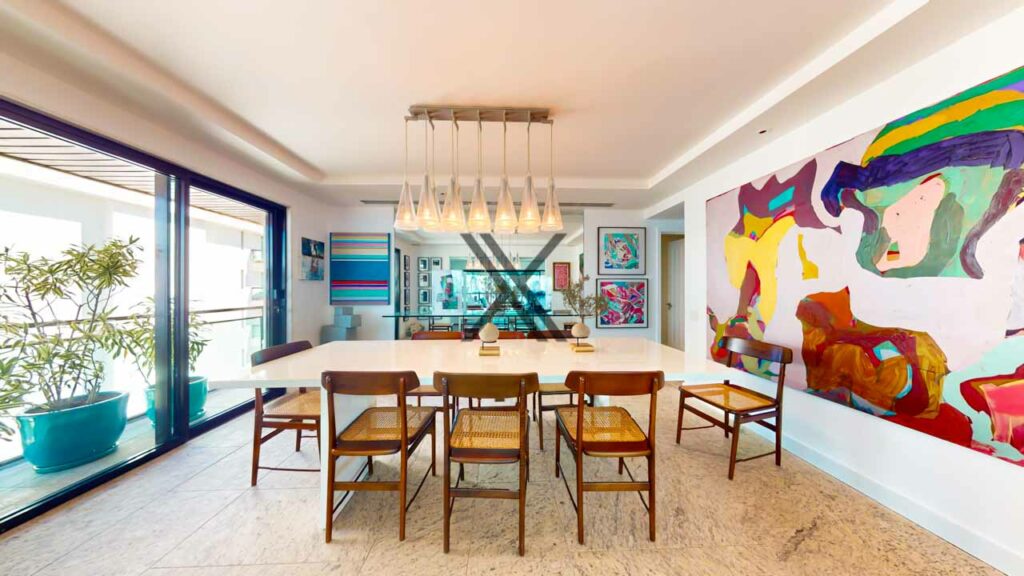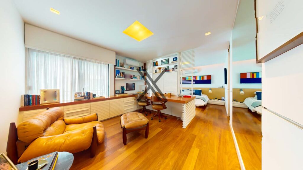 Apartamento de 389 m², reformado, em andar alto e com vista para o mar e campo de golfe. Situado em uma localização privilegiada, em frente a Praia de São Conrado, ele fica a menos de 5 minutos do metrô e do Shopping Fashion Mall.