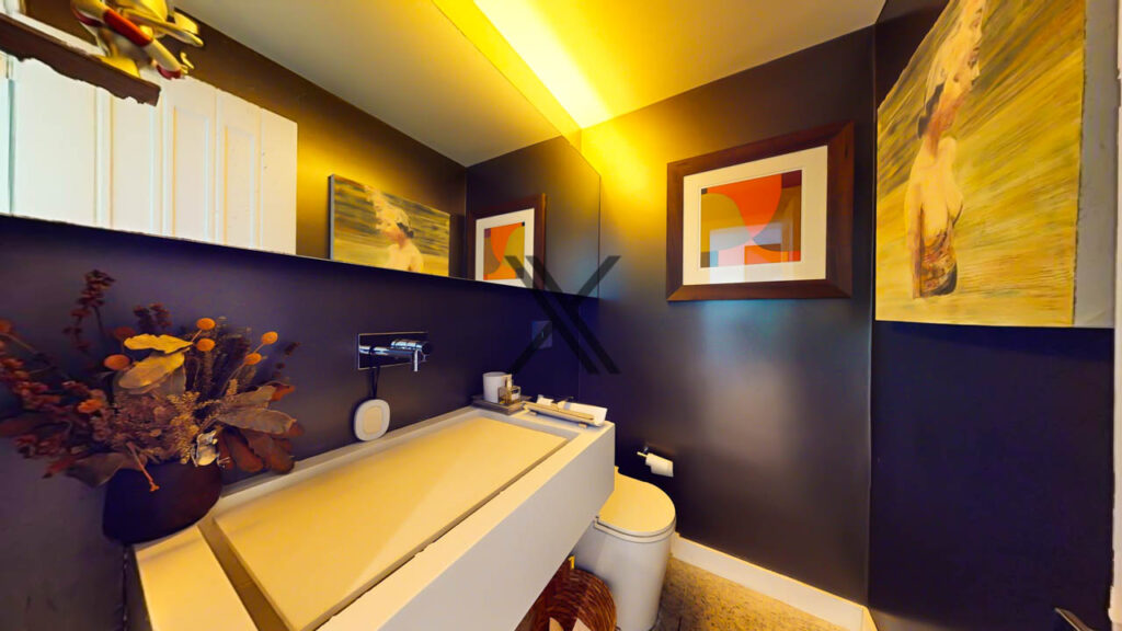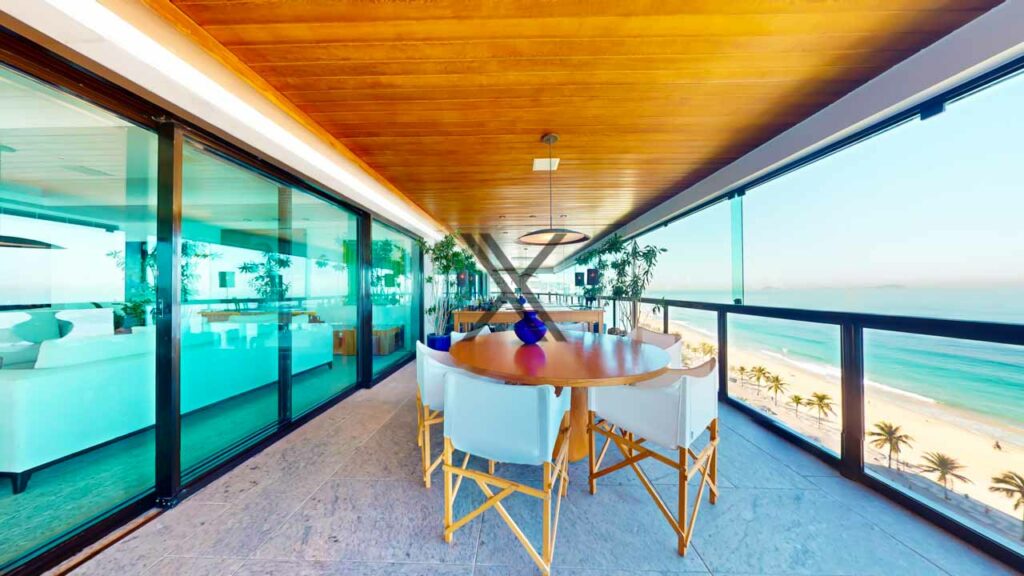 Na parte social, o imóvel possui uma belíssima sala com vista do mar de todos os pontos, ligado a uma varanda com área gourmet, a qual é fechada com cortina de vidro. Há também uma ampla sala de jantar com varanda e um lavabo de apoio. Toda a área conta com piso em mármore.