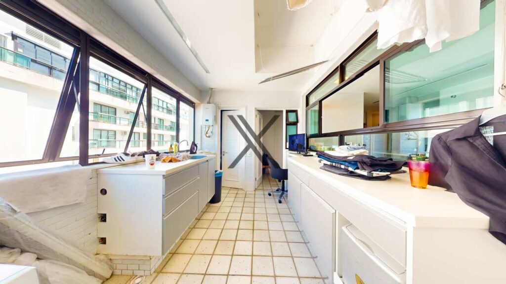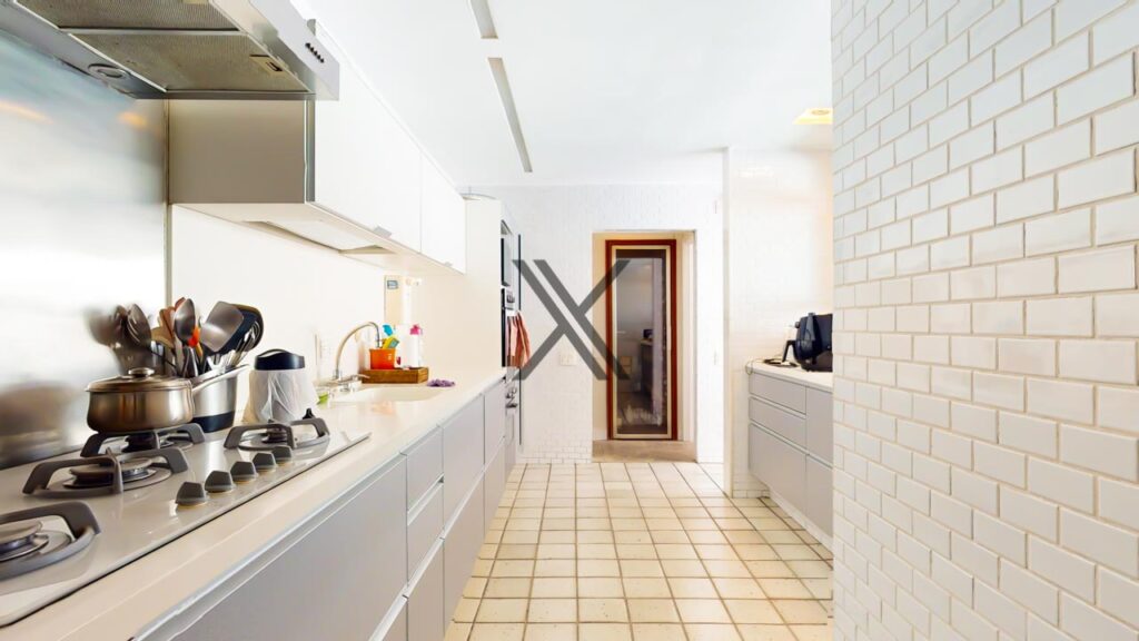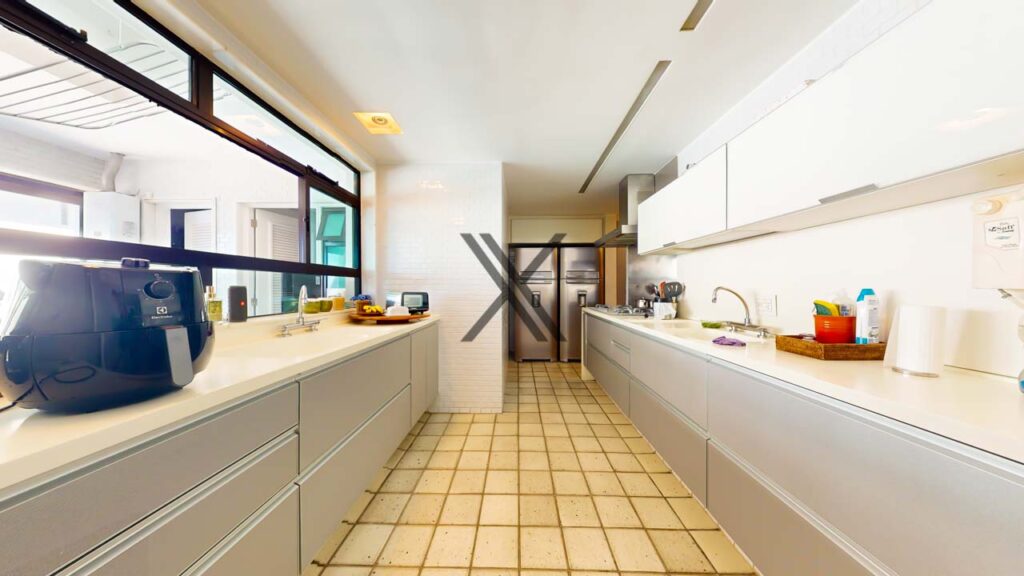A cozinha tem grande quantidade de armários, bancadas e uma excelente área de serviço com dependência completa para funcionários. Ao lado, há uma adega climatizada e uma confortável sala de TV.