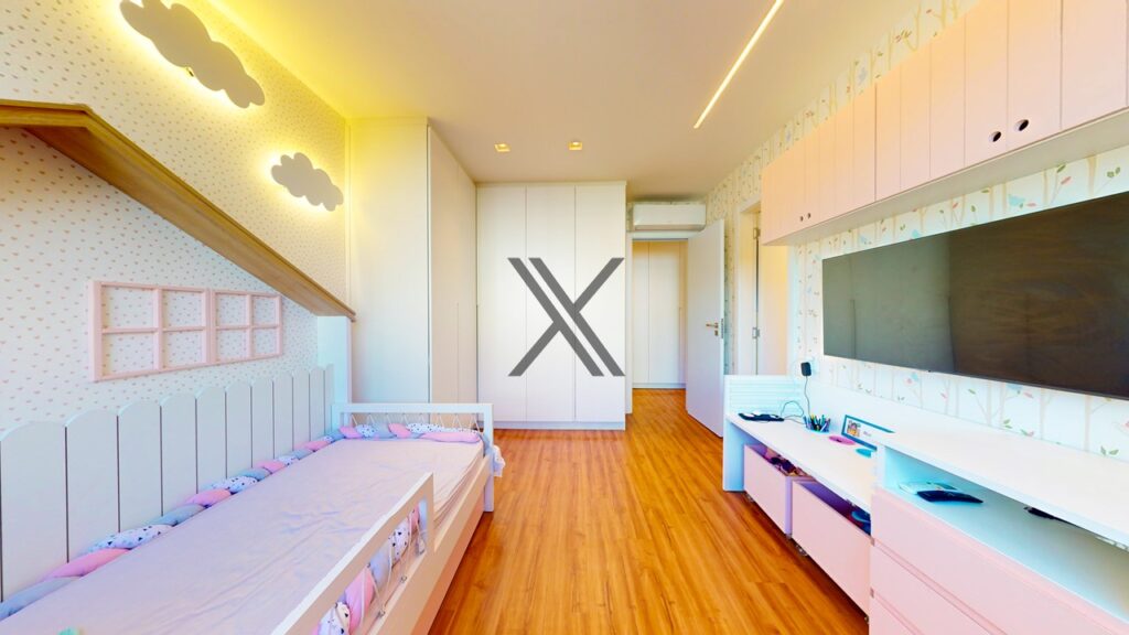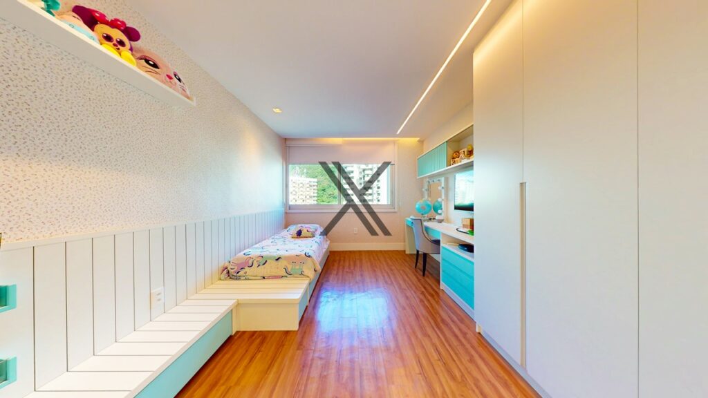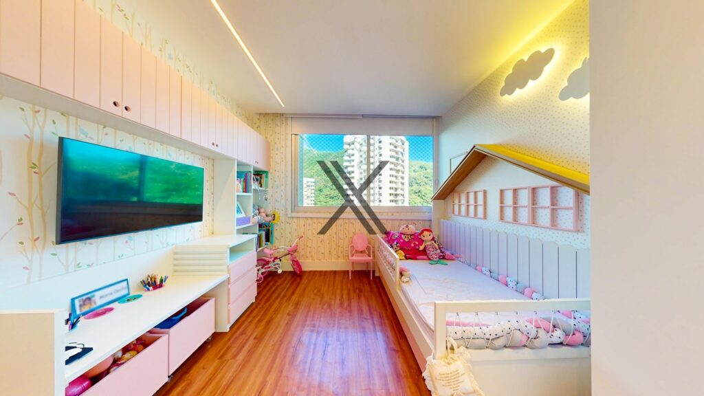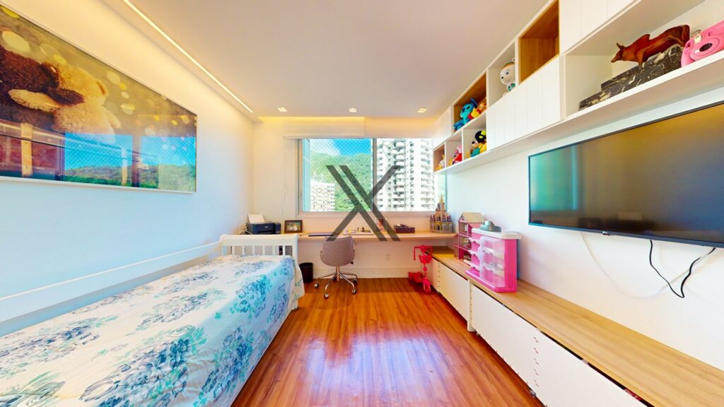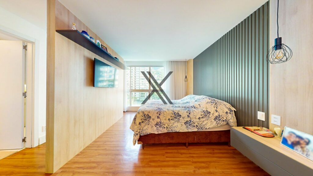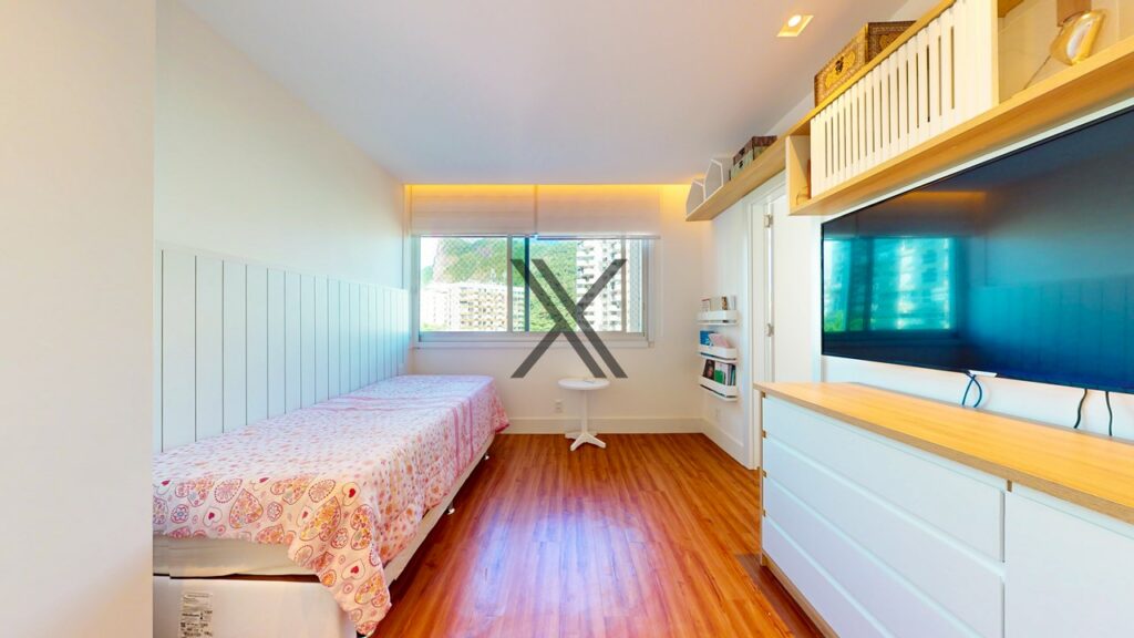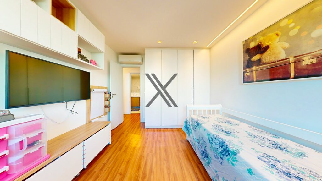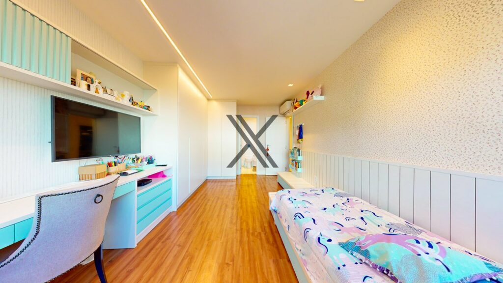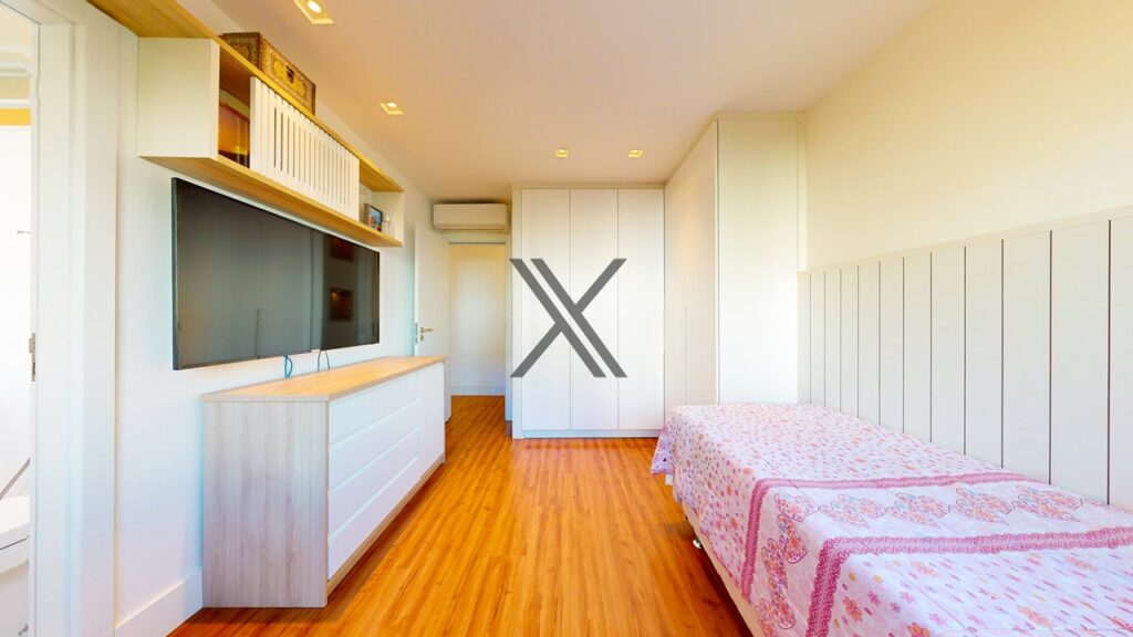 Na área privativa, o imóvel possui 5 quartos, 4 suítes. Todos os quartos têm boa metragem, grande quantidade de armários novos e uma excelente ventilação natural com amplas janelas.