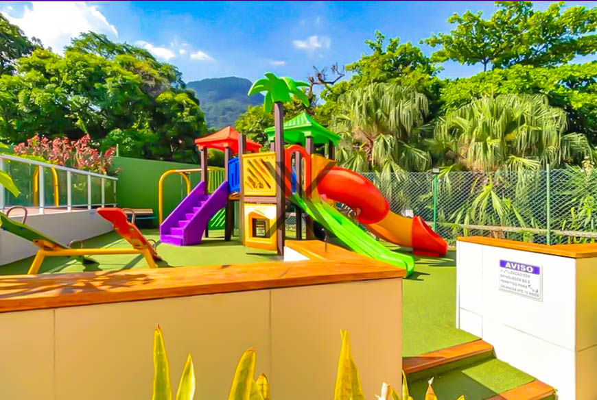 Situado a menos de 10 minutos a pé da Praia de São Conrado, o imóvel está ao lado do metrô, com supermercados a menos de 100 metros de distância e fica próximo do shopping Fashion Mall. O condomínio ainda oferece uma infraestrutura de condomínio com quadra poliesportiva, sauna, spa, piscina, salão de festas, biblioteca e brinquedoteca.