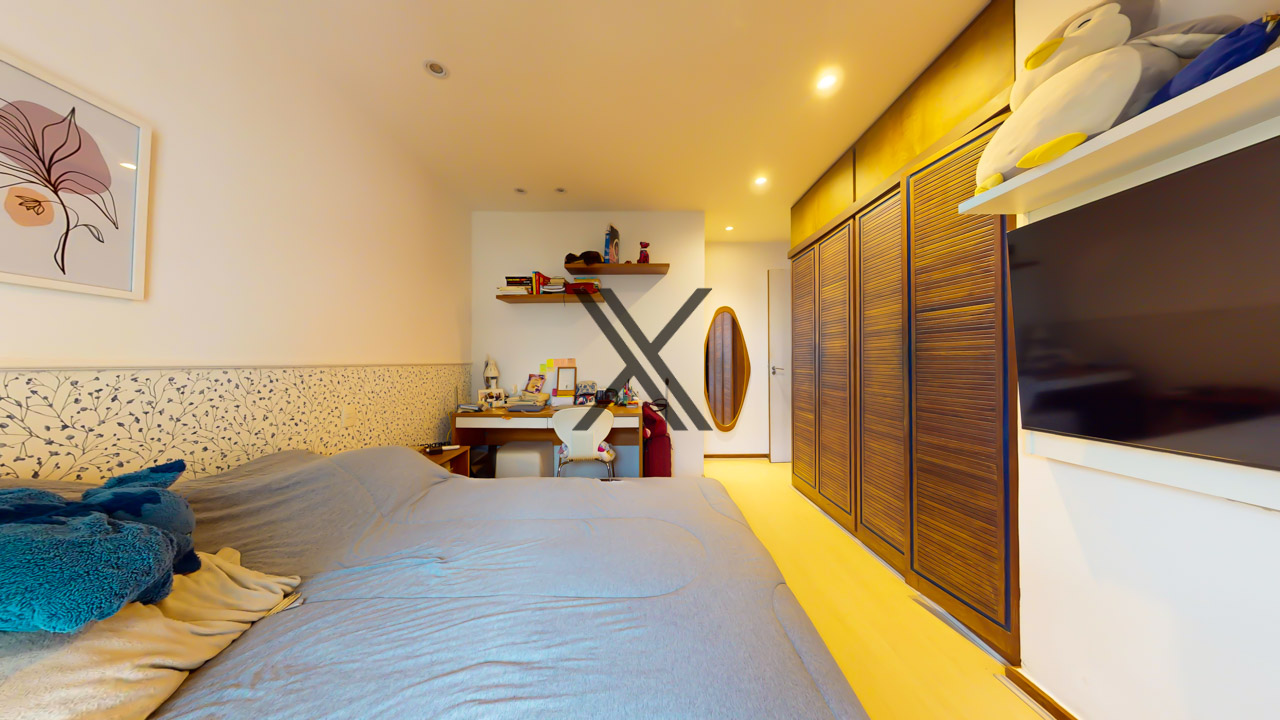 Na área privativa, o imóvel possui 4 quartos, sendo 2 suítes, todos com boas metragens e armários planejados em ótimo estado, além de contarem com amplas janelas. Banheiro social para os demais quartos que não possuem suítes completa o ambiente.
