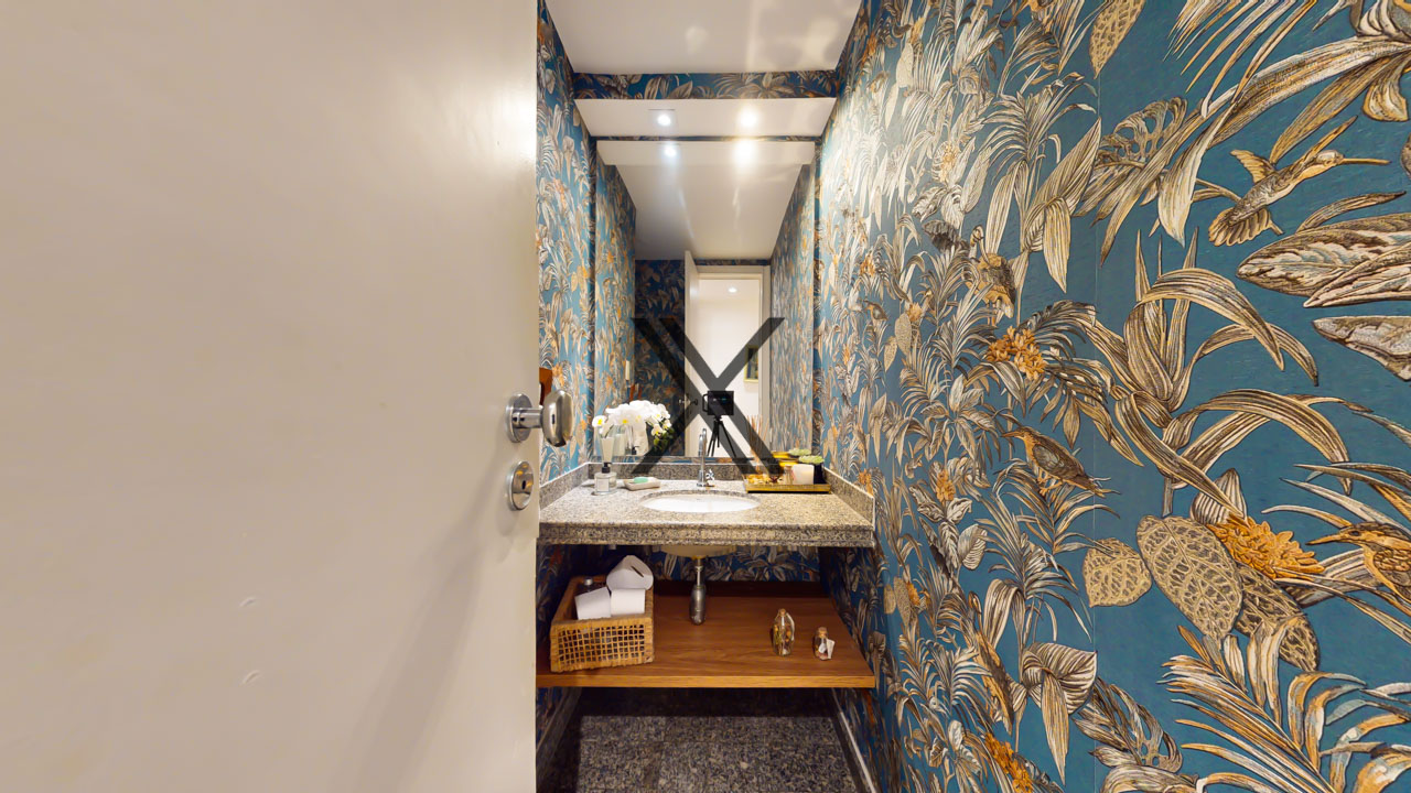 Na área social, o imóvel é composto por hall de entrada, sala de jantar, ampla sala de estar com ótima iluminação natural e acesso à varanda gourmet, de fino gosto. Junto à sala, há um lavabo de apoio às visitas.
