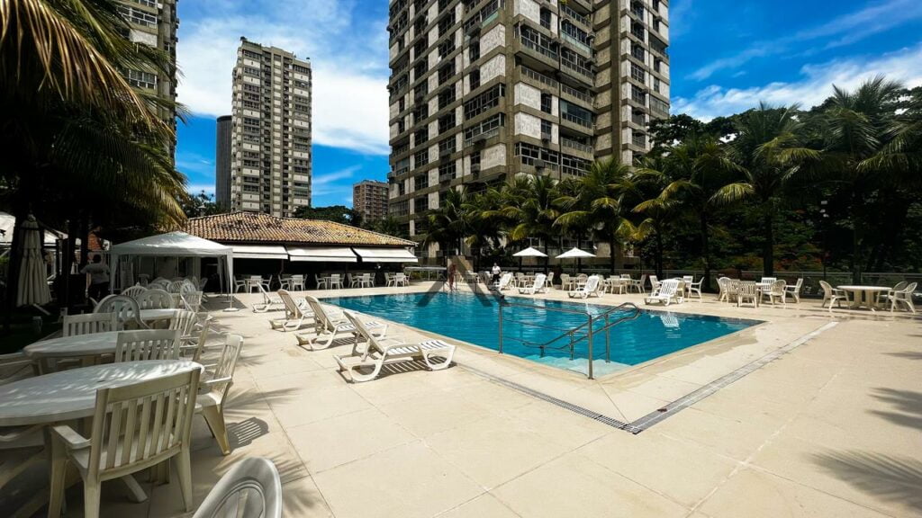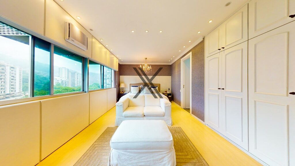 Apartamento de 260m², silencioso e em andar médio no condomínio Village São Conrado. Com vista livre para o verde, ele está localizado a menos de 3 minutos da praia, do metrô e do Shopping Fashion Mall, além de receber o sol da tarde.
