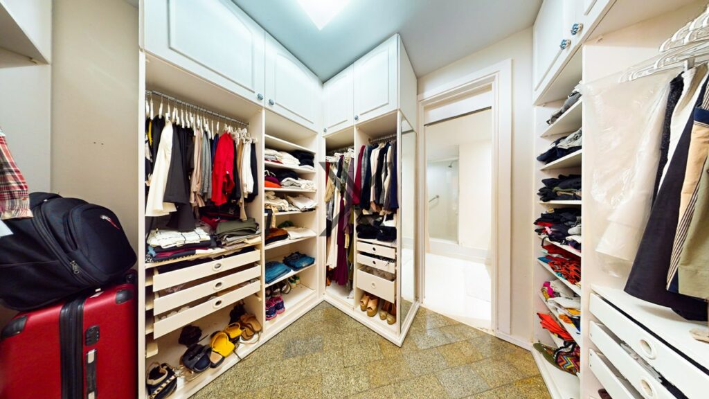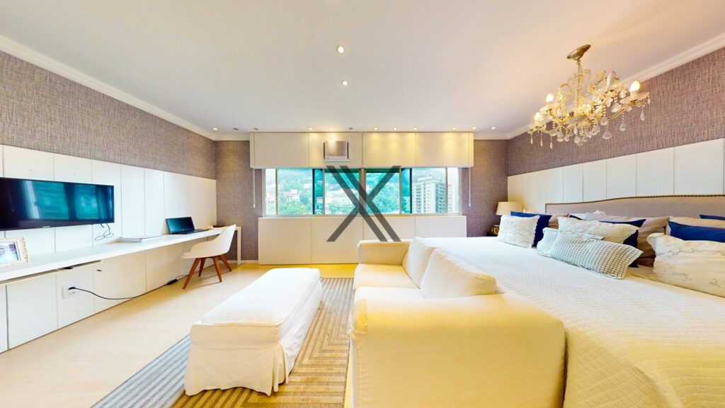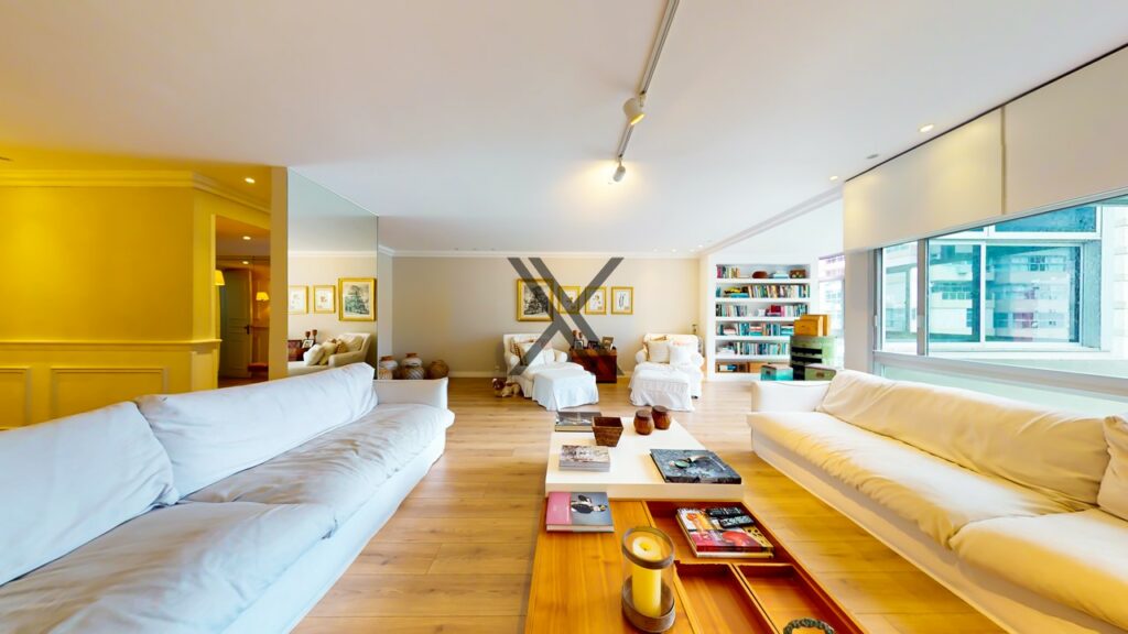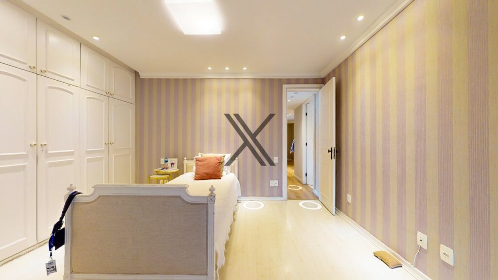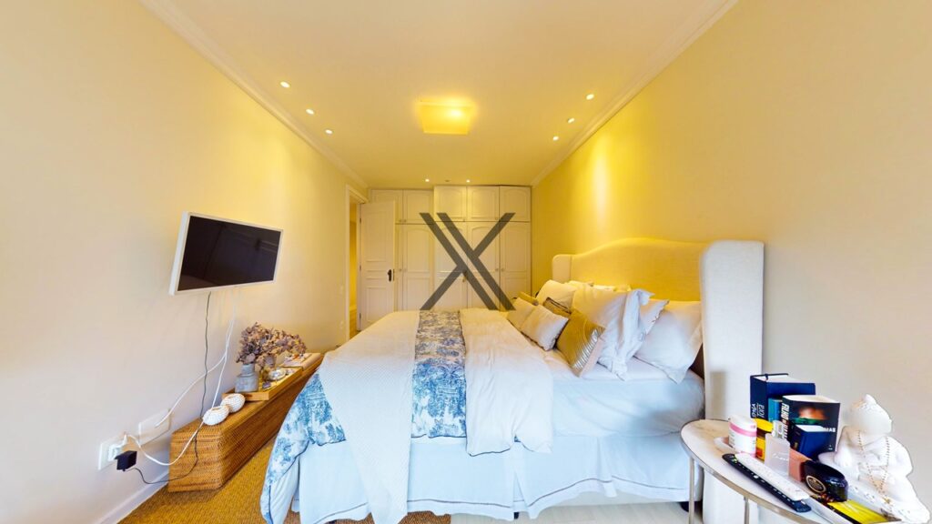 Na parte privativa, o apartamento contava originalmente com 5 quartos e hoje possui 4, sendo 1 suíte master com closet. Todos os cômodos têm boas metragens e excelente ventilação natural por conta de suas amplas janelas. Essa área do imóvel também possui um belo banheiro social para seus moradores.