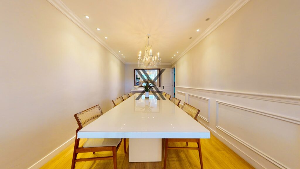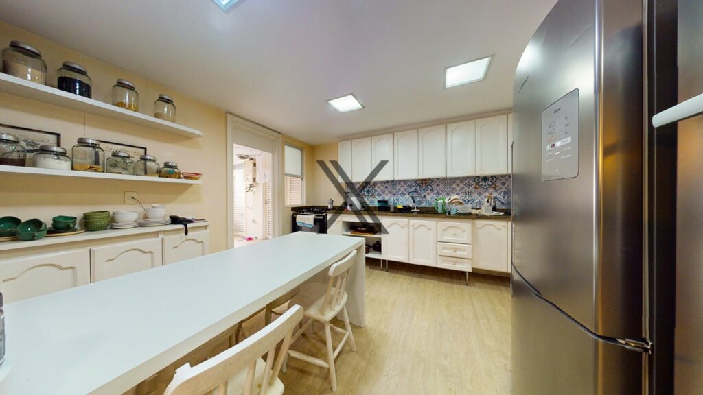 O imóvel é composto por sala de estar em dois ambientes com sala de jantar para dez lugares, cozinha/copa bem espaçosa e área de serviço com duas dependências para empregados.