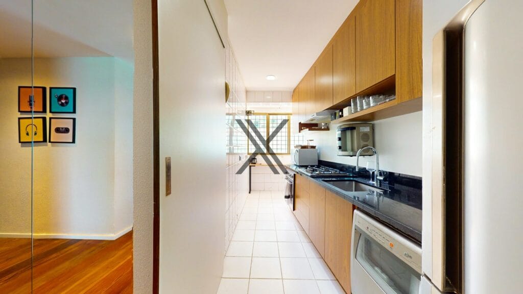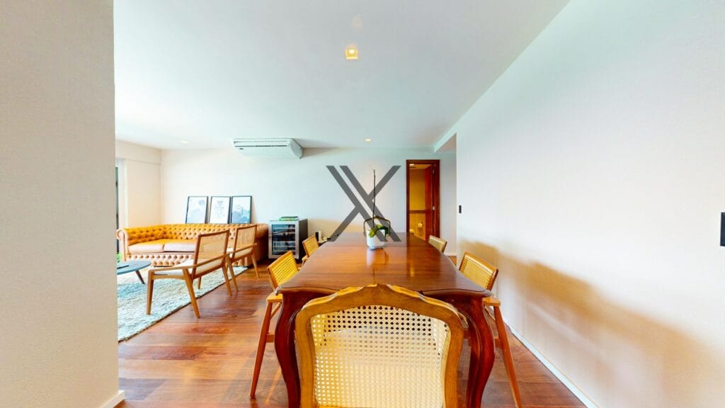 O imóvel é composto por sala de estar de 40 m², piso em madeira nas áreas social e íntima, ampla sala de jantar para 6 lugares, cozinha com grande quantidade de armários, bancadas novas e excelente área de serviço com máquina de lavar. Para apoio, o imóvel conta ainda com um lavabo.