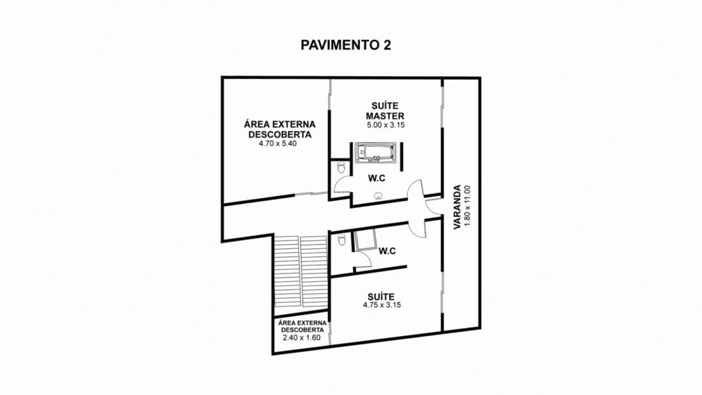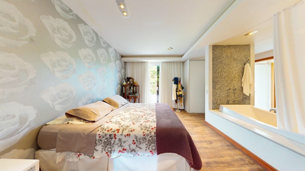 O segundo pavimento possui 2 suítes (sendo a master com hidromassagem) com excelentes espaços, projeto de iluminação, ar-condicionado e varanda ampla e privativa com vista para o mar.