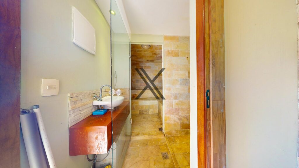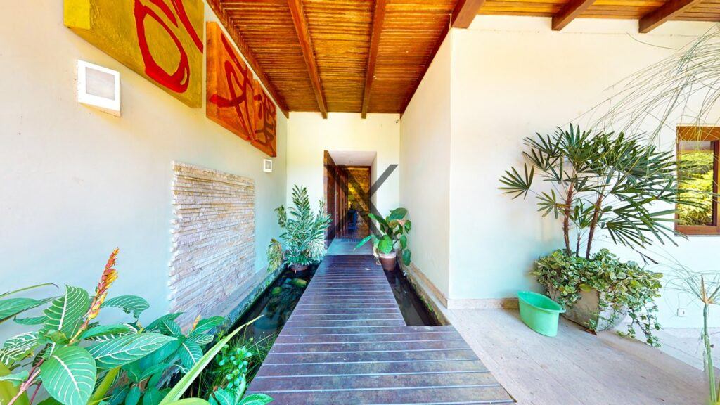 A entrada da casa possui um hall espaçoso com lago ornamental e jardim muito bem cuidado. O imóvel dispõe de lazer com piscina, sauna a vapor, um espaço tranquilo para relaxar. Próximo à piscina encontra-se 1 suíte, a qual pode ser convertida em sala de jogos.