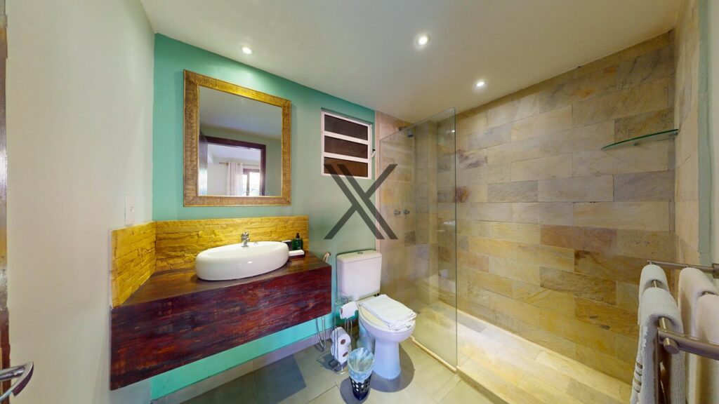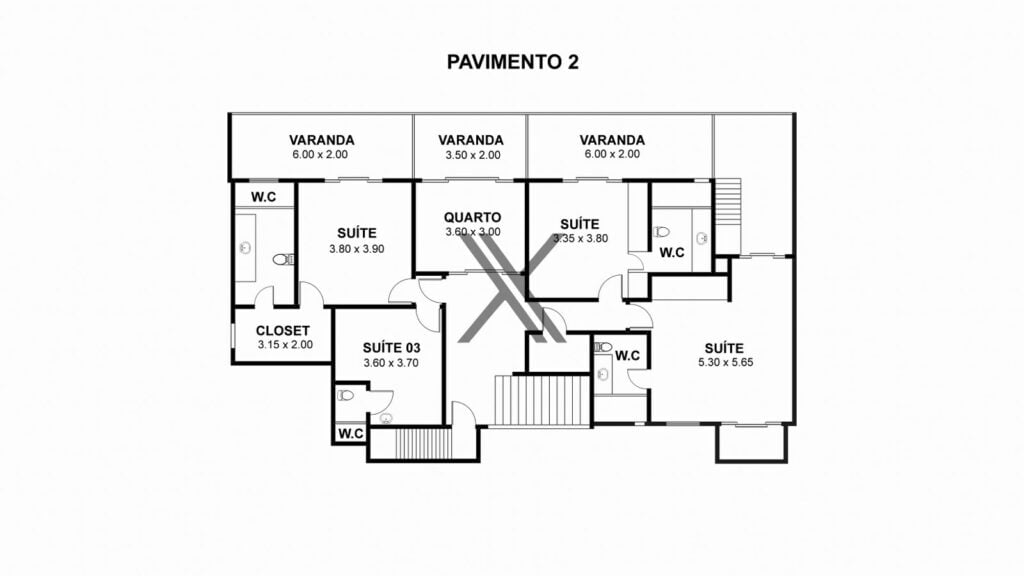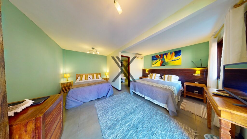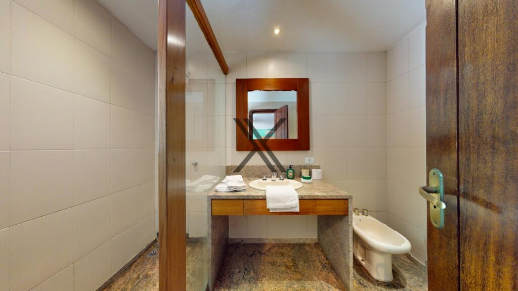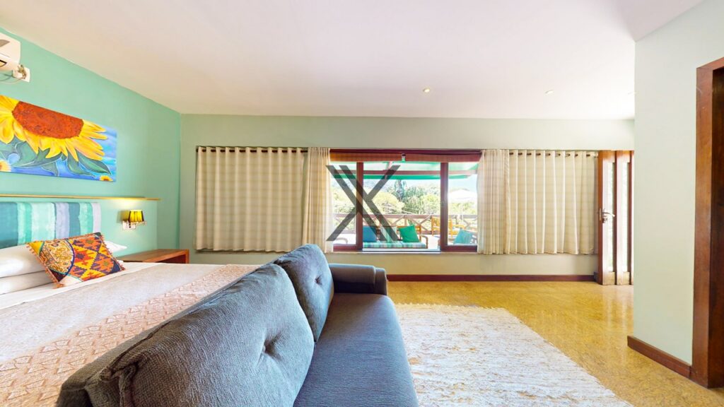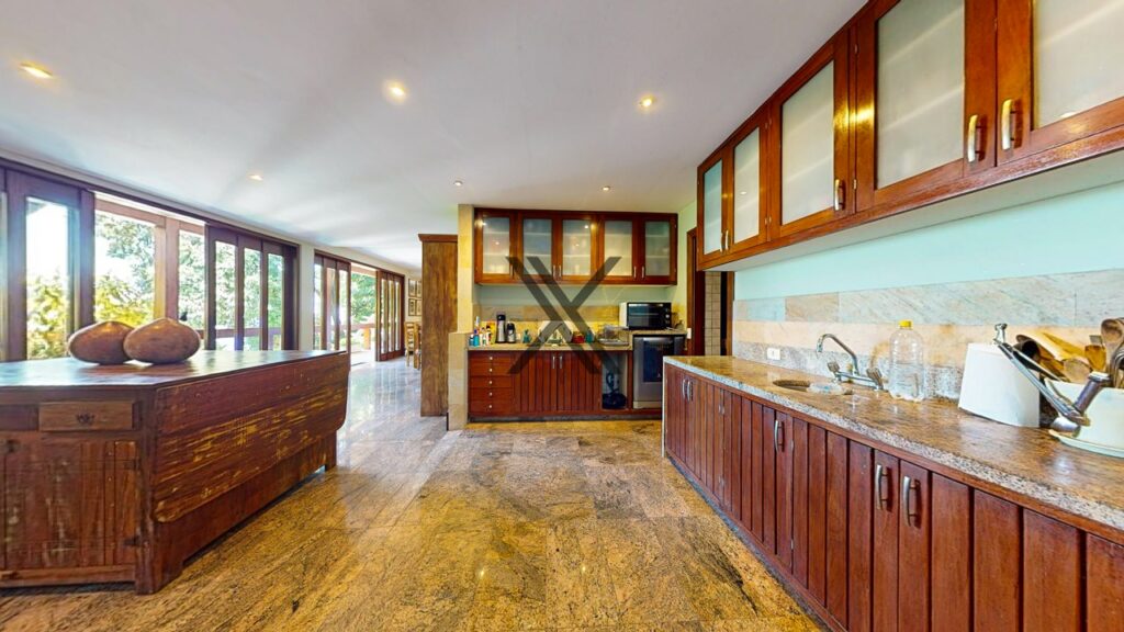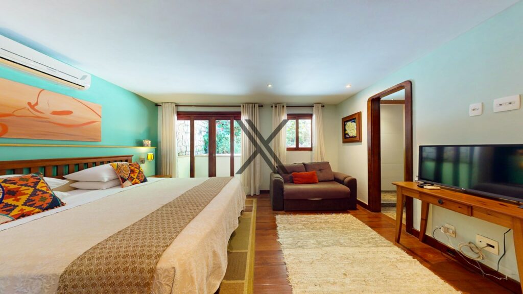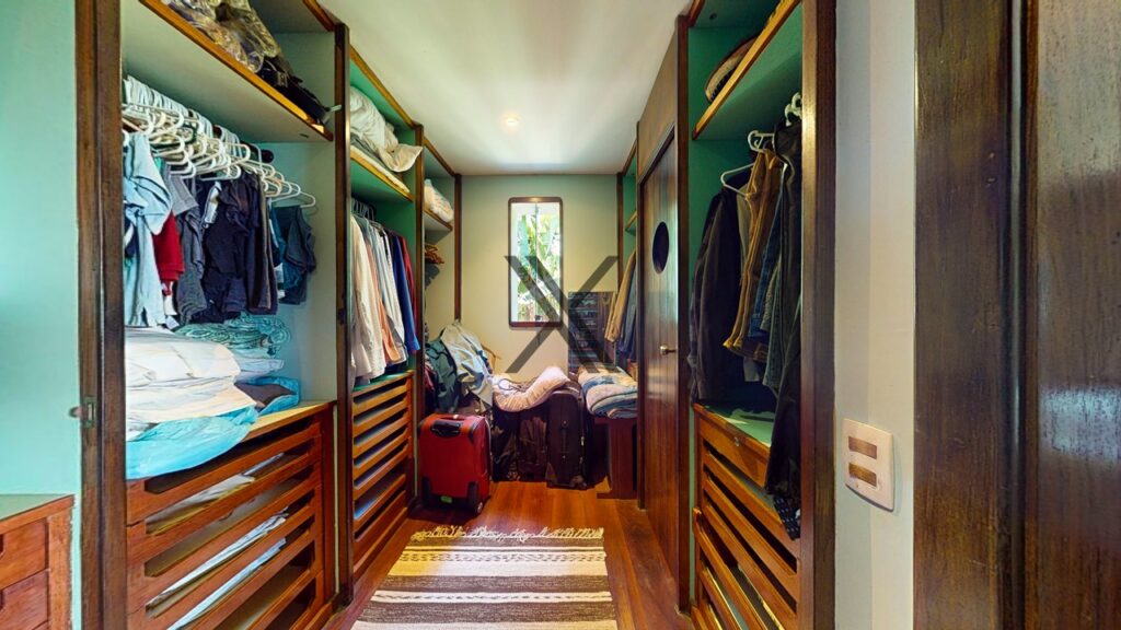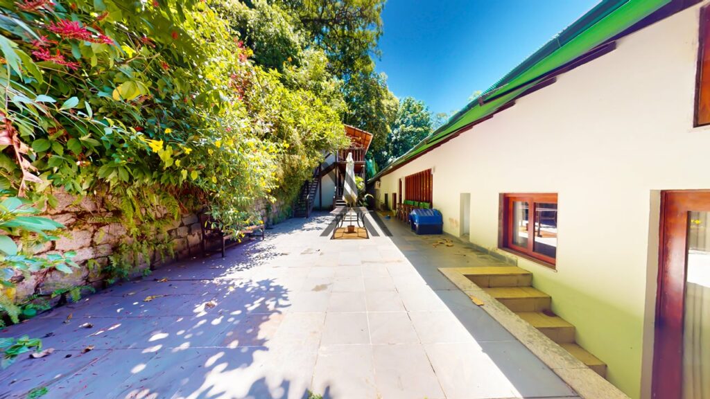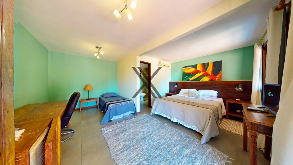 O segundo pavimento conta com 4 suítes de bom tamanho (sendo 1 suíte master com closet), escritório, acesso à varanda e ao mezanino. Na parte de trás da propriedade há mais 2 suítes, ambas com varandas.