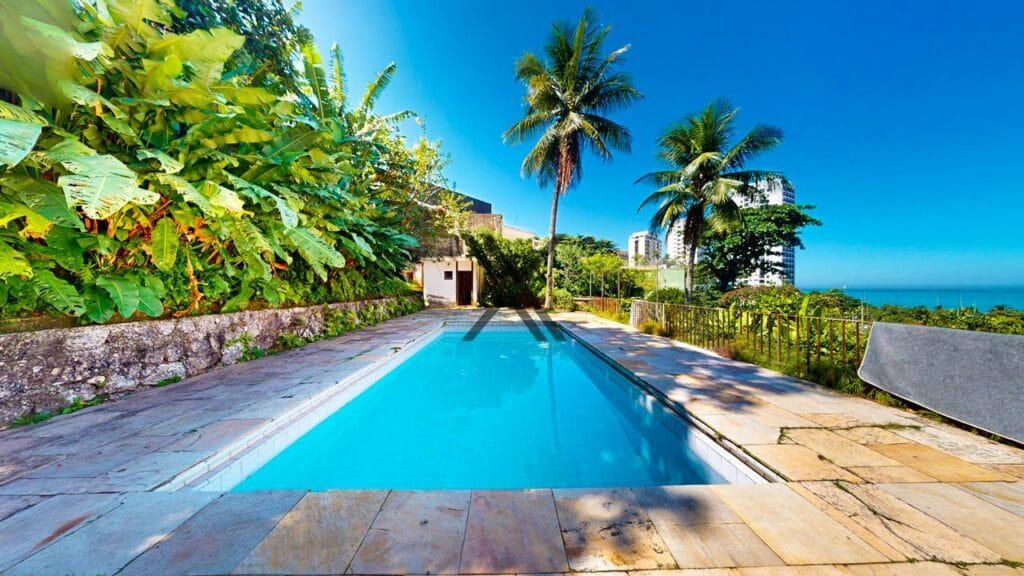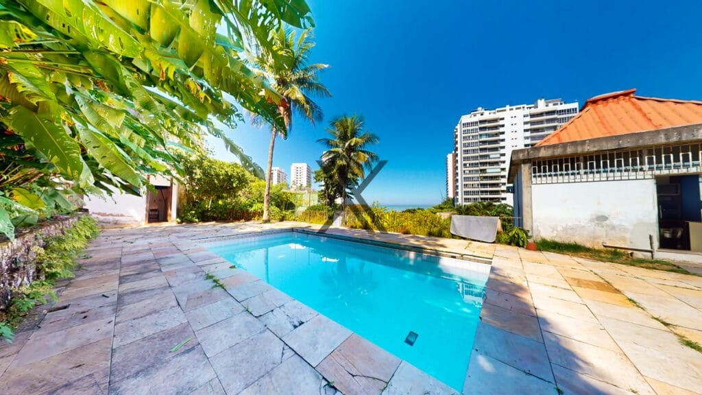 Casa triplex de 521 m², em terreno de 1000 m², silenciosa, com vista para o mar e para a Pedra da Gávea, em São Conrado. O imóvel se destaca pelo seu tamanho considerável e pela localização excelente que oferece proximidade às melhores opções que o bairro tem a oferecer.