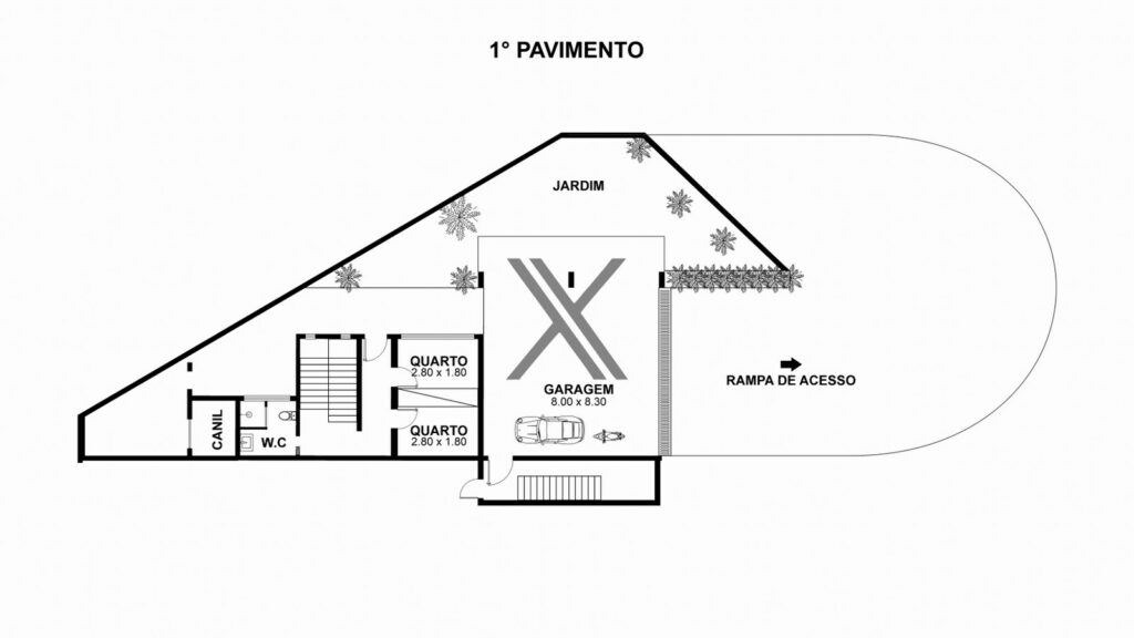 No térreo, encontram-se a entrada principal, uma adega e a escada para o 1º pavimento, além de um anexo composto por saleta, quarto e banheiro. A propriedade também dispõe de um canil.