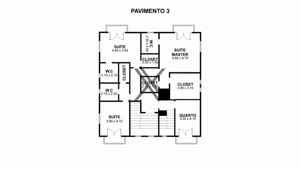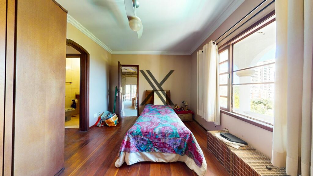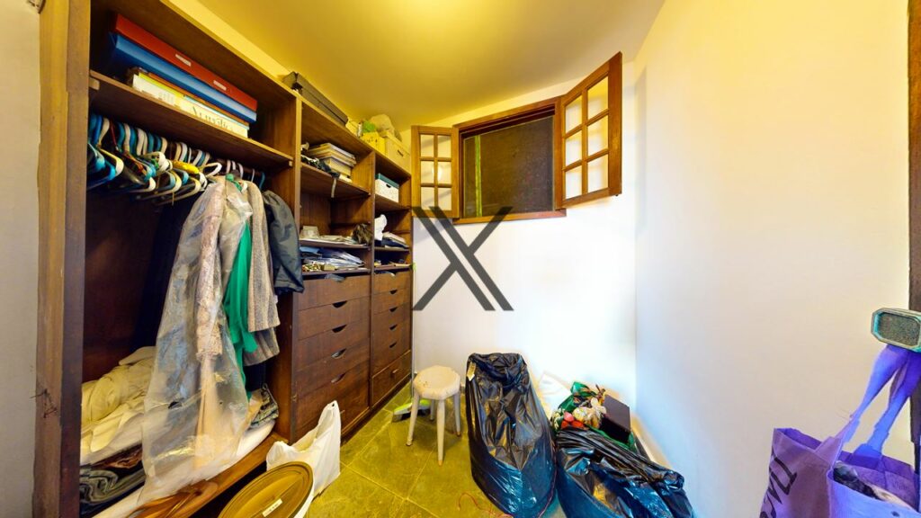 O pavimento superior abriga 3 suítes espaçosas, com 2 suítes possuindo closet e a suíte master contendo 2 closets, além de um escritório.