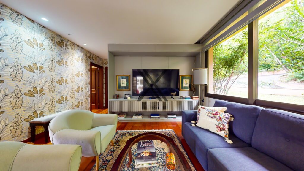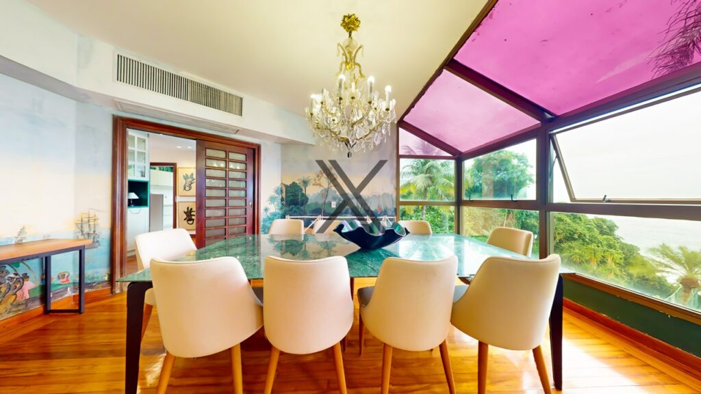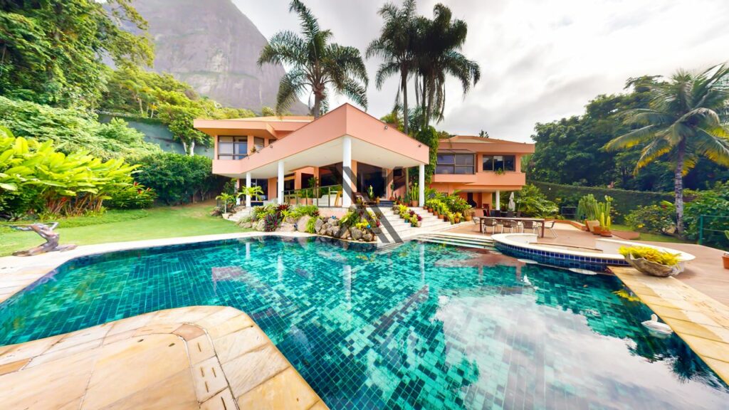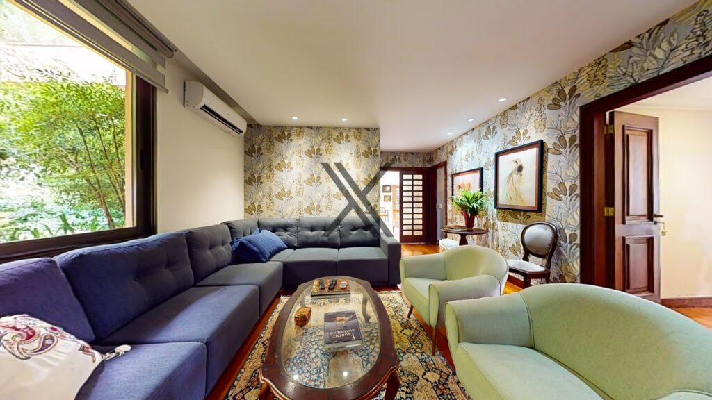 Mansão quadruplex de 450 m² no IPTU (a metragem da área construída é bem superior), em terreno de 2.000 m², indevassável, silenciosa, com deslumbrante vista para o mar e para a Pedra da Gávea, cercada de muito verde em São Conrado. O imóvel se destaca pela suntuosidade de seu tamanho e pela localização excelente que oferece proximidade à natureza impactante que o bairro tem a oferecer.