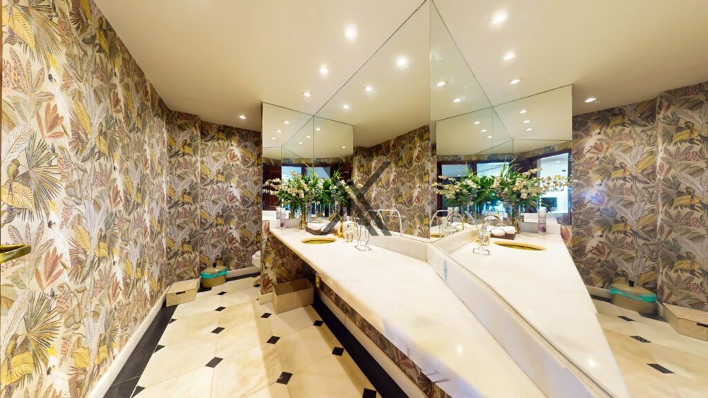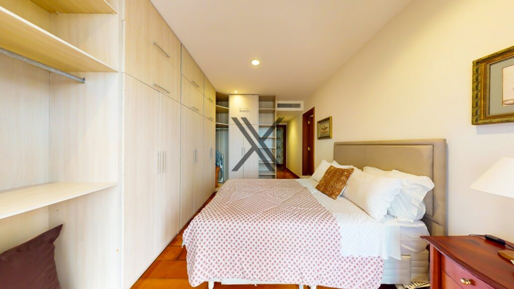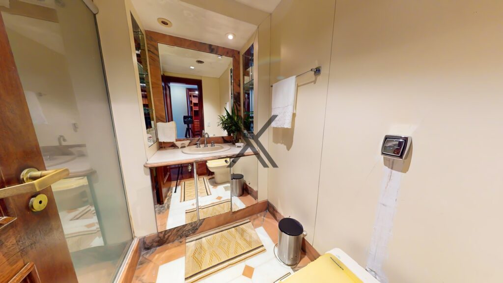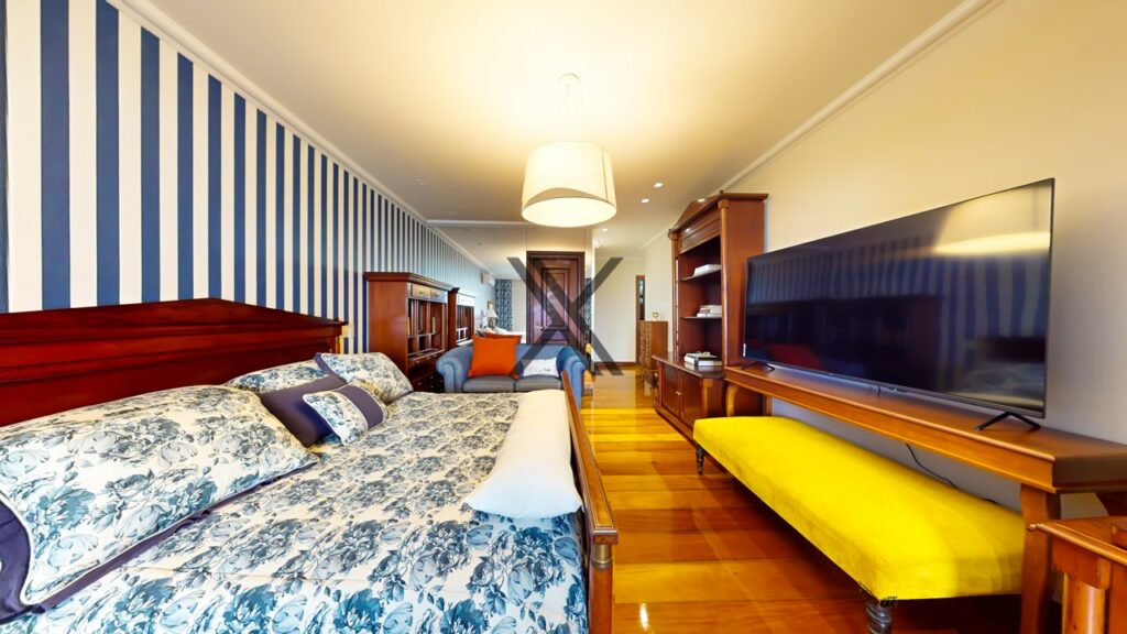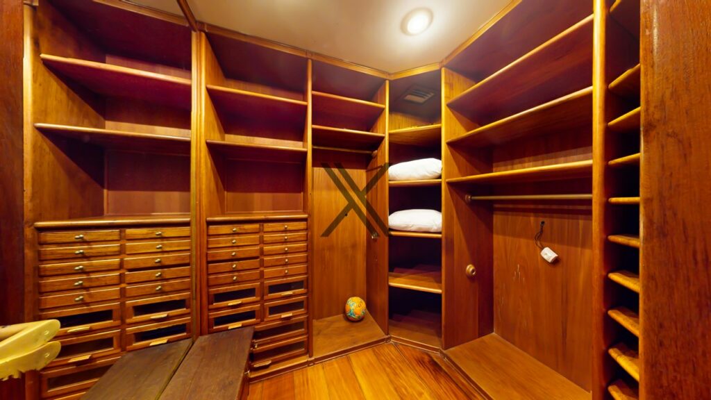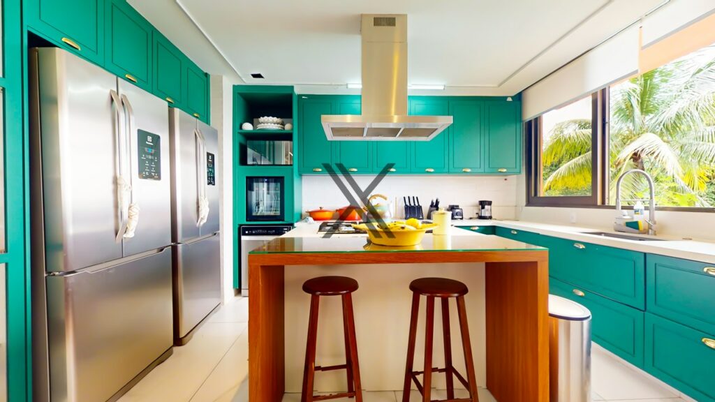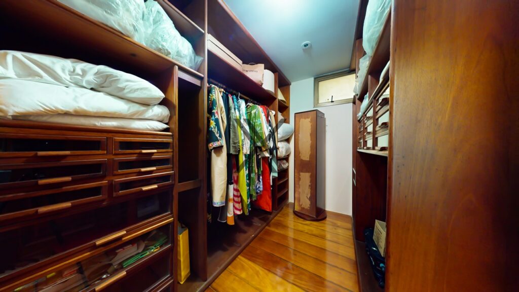 A casa dispõe de um hall de entrada com um belo jardim de inverno e, em um nível superior, da parte privativa com sala de estar, roupeiro e 4 espaçosas suítes – 2 dessas possuem banheiro canadense, tornando os cômodos maiores e mais confortáveis. Todas as suítes possuem closet, split e acesso a uma varanda central com vista para o mar, sendo que a suíte master possui duplo closet e hidromassagem em seu banheiro.