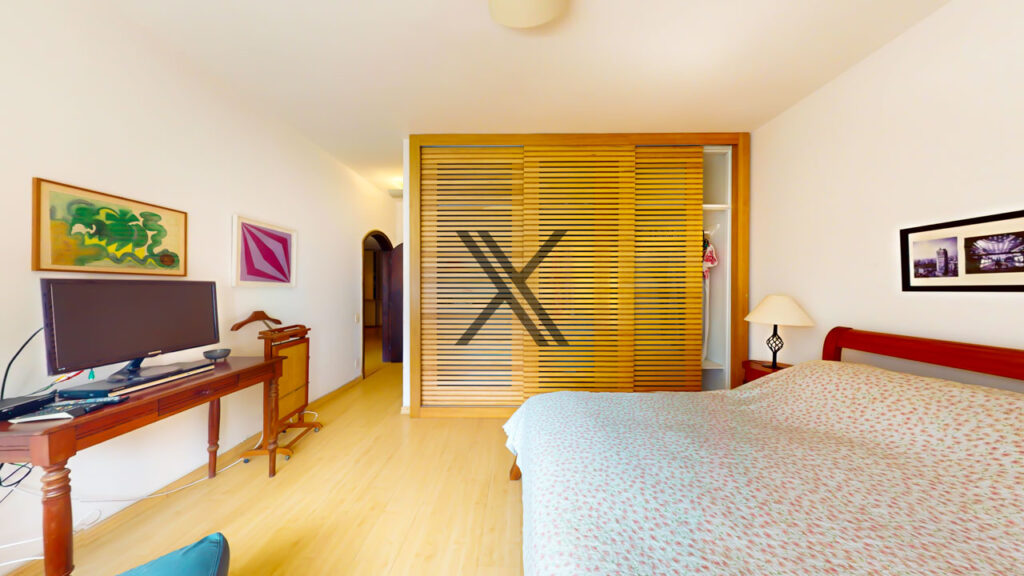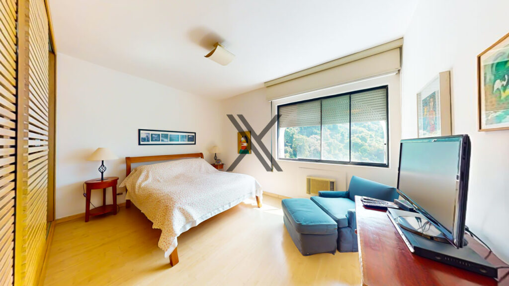 No acesso à parte privativa, o corredor separa muito bem os ambientes e as portas com ferragens de primeira linha trazem versatilidade e privacidade ao dia a dia dos moradores. O apartamento é composto por 4 quartos, sendo 2 suítes, todos bem amplos e com ótima iluminação natural. Um banheiro social de apoio aos outros quartos complementa o ambiente.