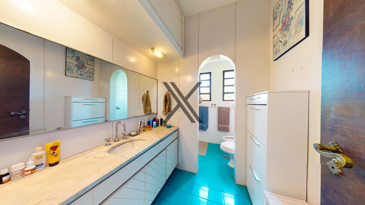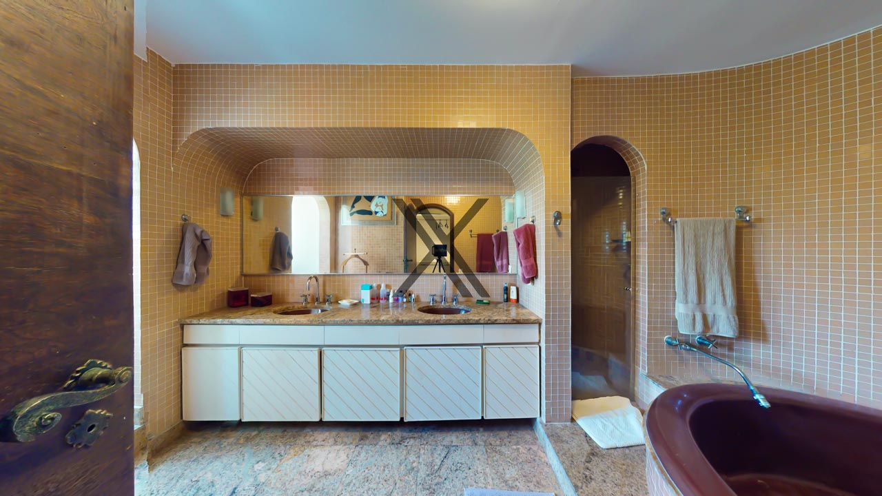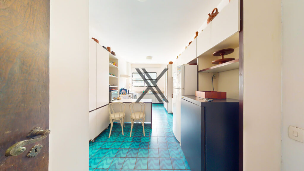A cozinha apresenta armários feitos sob medida em grande quantidade, além de ter uma copa para a praticidade do cotidiano e bancadas longas para apoio e organização. Já a área de serviço é separada da cozinha e oferece acesso à duas dependências completas para funcionários.
