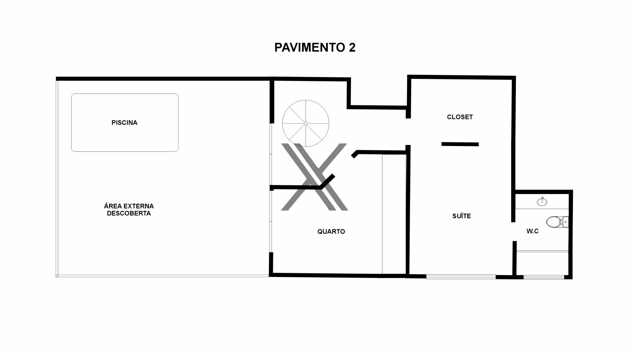 No segundo pavimento encontramos mais 2 quartos, sendo uma grande suíte com closet. A área externa é bem ampla e possui um deck com piscina.